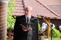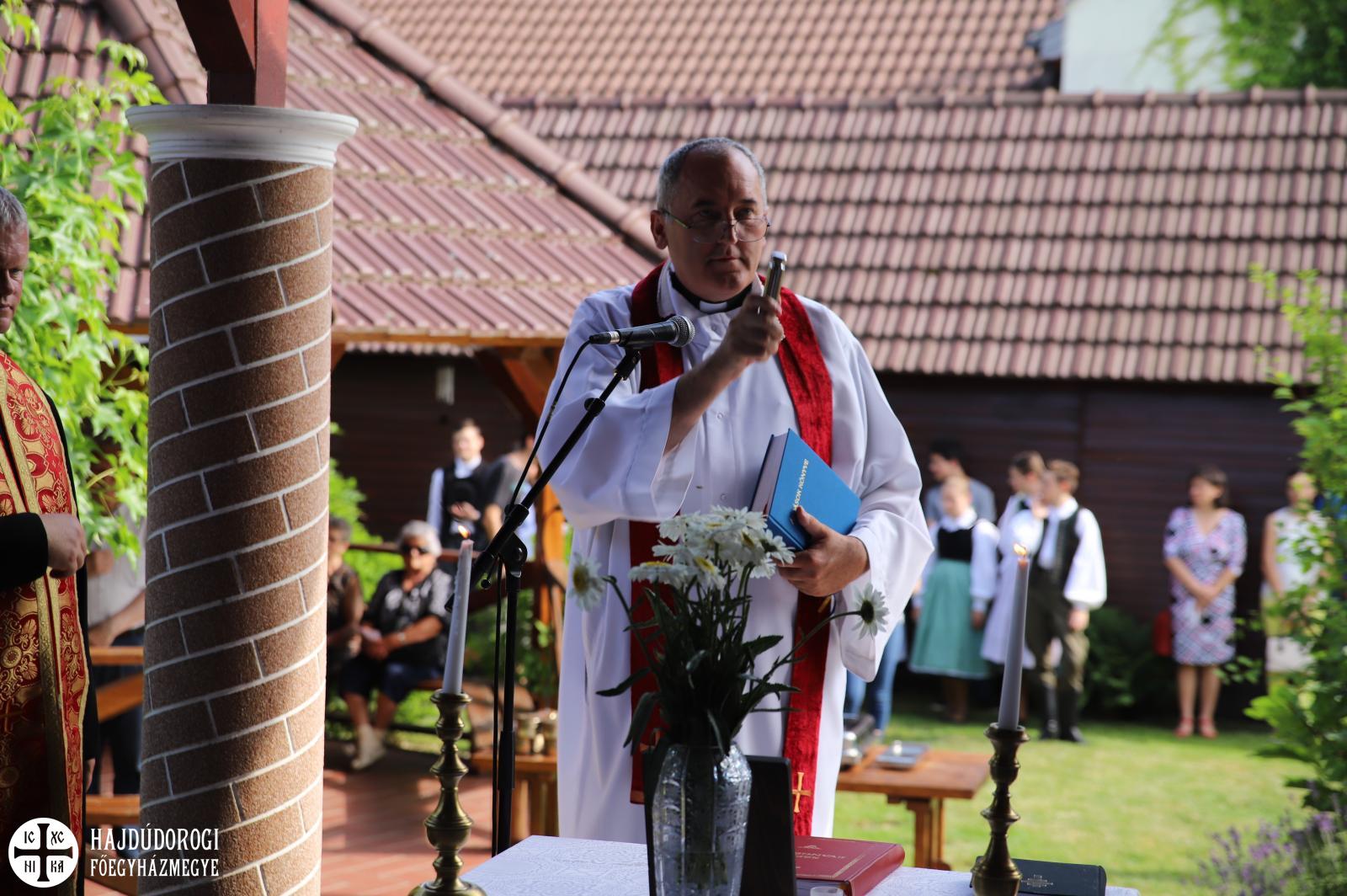 A köszöntők után Kocsis Fülöp érsek-metropolita felszentelte a házat, majd Juhász Imre római katolikus plébános és Gacsályi Gábor református lelkész is áldást kért az épületre.