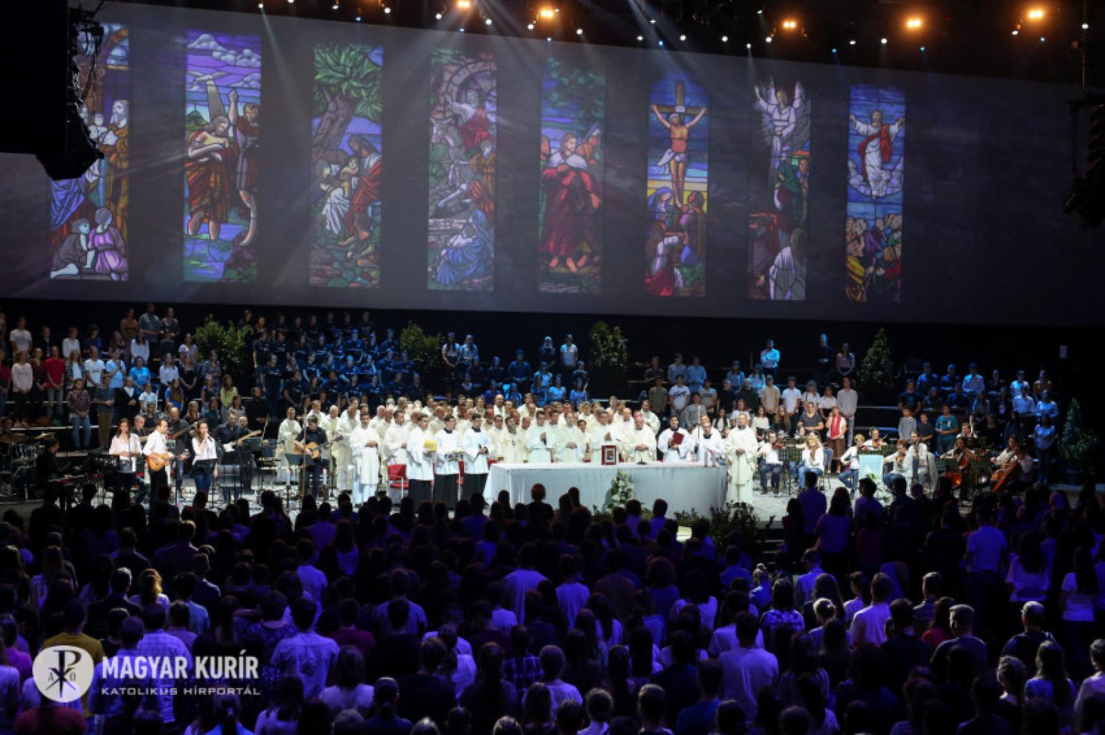 Elsőként az ország különféle részéből és a külhonból érkezett mintegy ötezer fiatalt köszöntik, nagyobb tájegységenként. Megtudhatjuk, hogy a BOK épületében van gyónási lehetőség, lehet készíteni speciális Instagram-fotókat, több ponton imaszándékokat gyűjtenek a szentmisére.