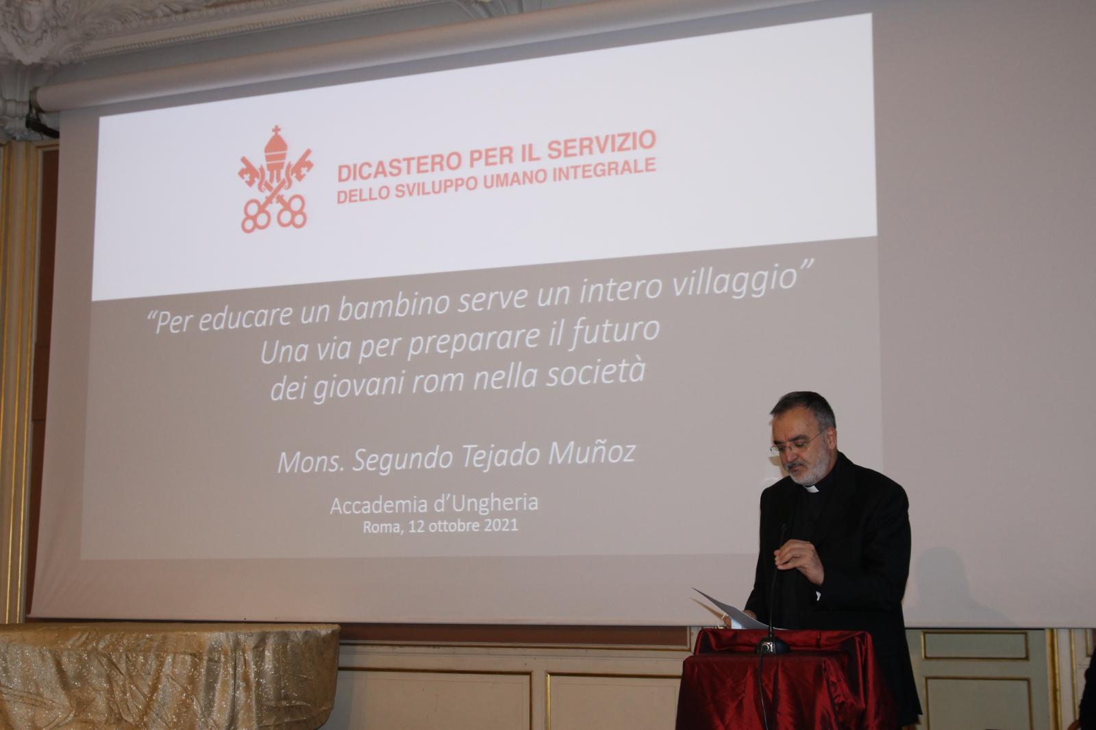 Segundo Tejado Muñoz pápai prelátus, az Átfogó Emberi Fejlődés Előmozdításának Dikasztériuma helyettes titkára a spanyolországi cigánymisszióról beszélt. Beszédében idézett egy afrikai mondást: „Egy gyermek felneveléséhez egy egész falura van szükség”. Ennek kapcsán fejtette ki, hogy nem elég csupán az egyes roma fiatalok nevelése és képzése, hanem egységet, közösséget kell formálni köztük és a társadalom tagjai között.