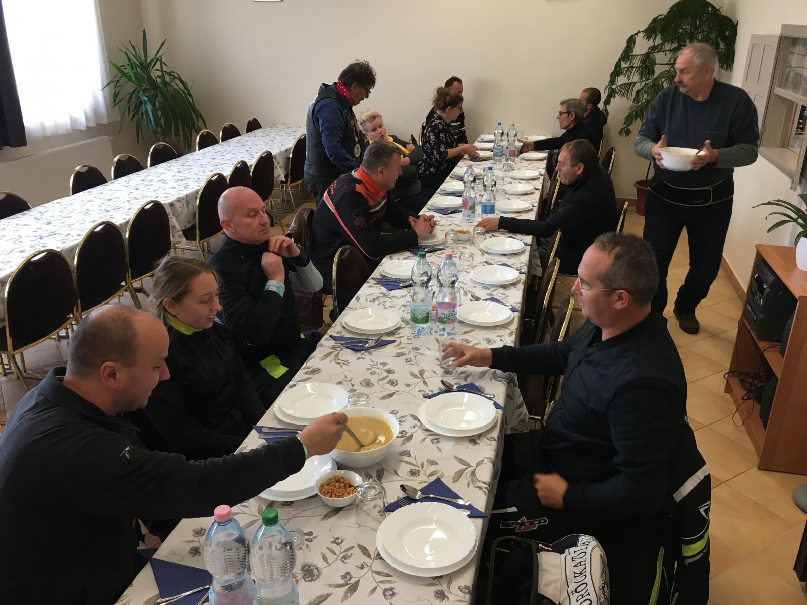 A zarándokházban jó hangulatban fogyasztottuk el ebédünket; egy motoros társaságnak mindig akad megbeszélni valója: megosztásra váró élmények, hasznos tippek a motorok tartására, és persze a tervek, amelyek már a jövő évi szezonra irányulnak.