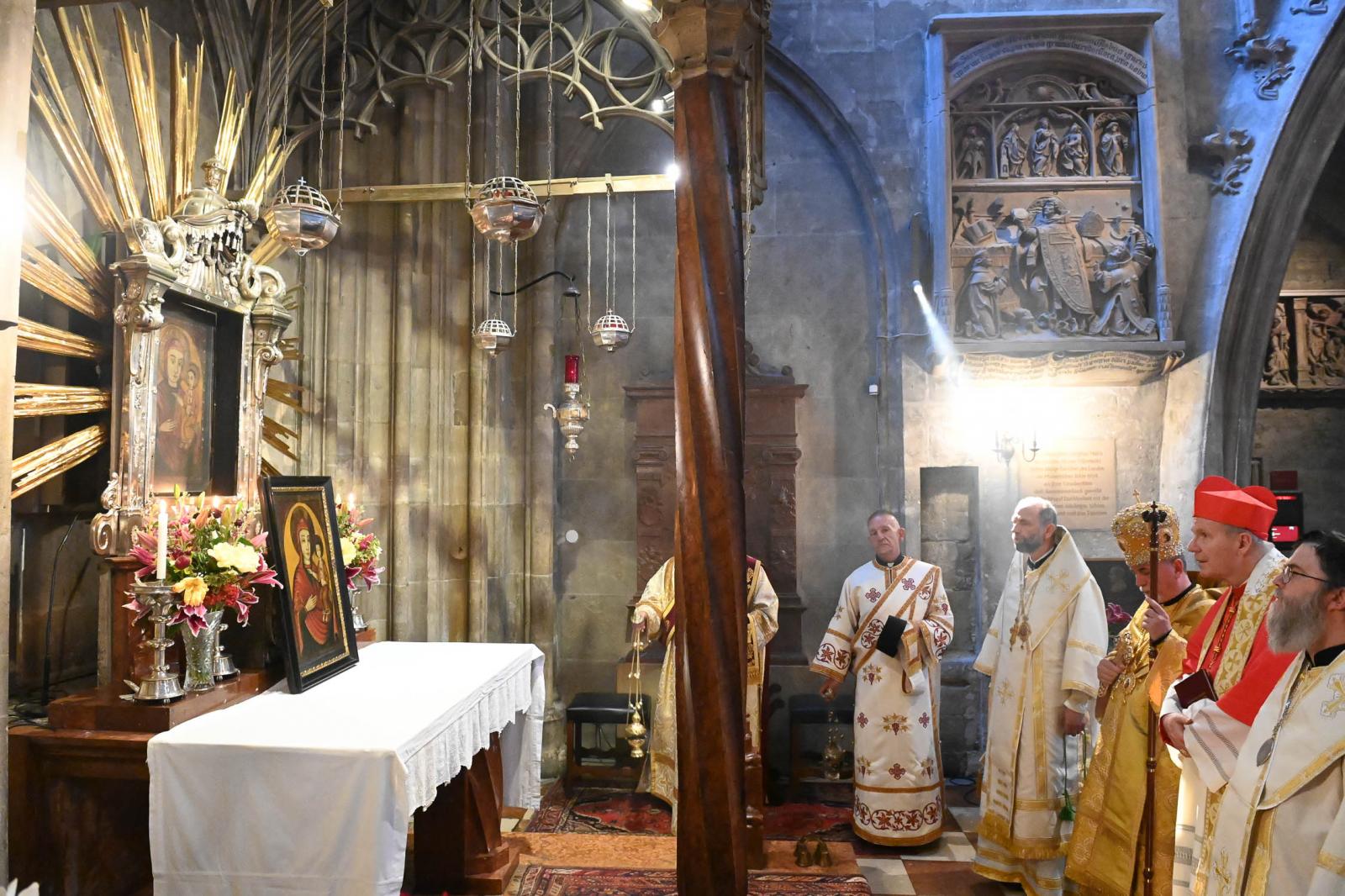 A második nap végeztével a püspök atyák és kísérőik átvonultak a Stephansdomba, hogy közösen végezzenek Szent Liturgiát, melynek magyar vonatkozású különlegessége volt, hogy a liturgia előtt a szertartást végző atyák a máriapócsi kegyképhez járultak, aminek másolatát Fülöp és Atanáz atya az oltárhoz vitte.