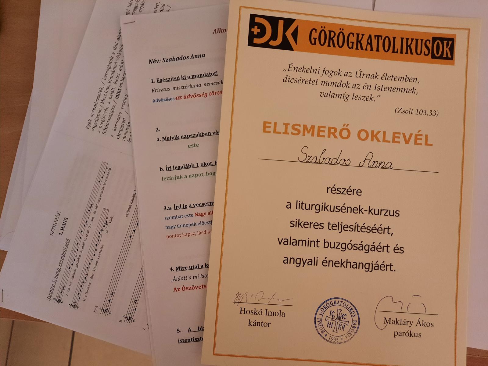 Izgalmas tapasztalat volt számomra, hogy milyen jó csapatot alkot a következő szolgálatára készülő kántor, a vallását gyakorló hívő és a keletiséget kedvelő római katolikus. Mindegyikünkben nagy volt az elkötelezettség és az érdeklődés, mindannyian töltekeztünk az órán hallottakból, és vártuk a következő találkozást, s persze értékeltük Imola felkészültségét, gyakorlást segítő anyagait, s a korábban tanultakat ellenőrző játékos feladatait. Az ő lelkiismeretessége minket is gyakorlásra sarkalt, jó példája éneklésre bírt, fáradhatatlansága kitartóvá tett.