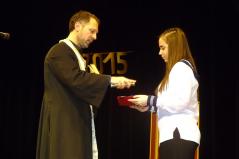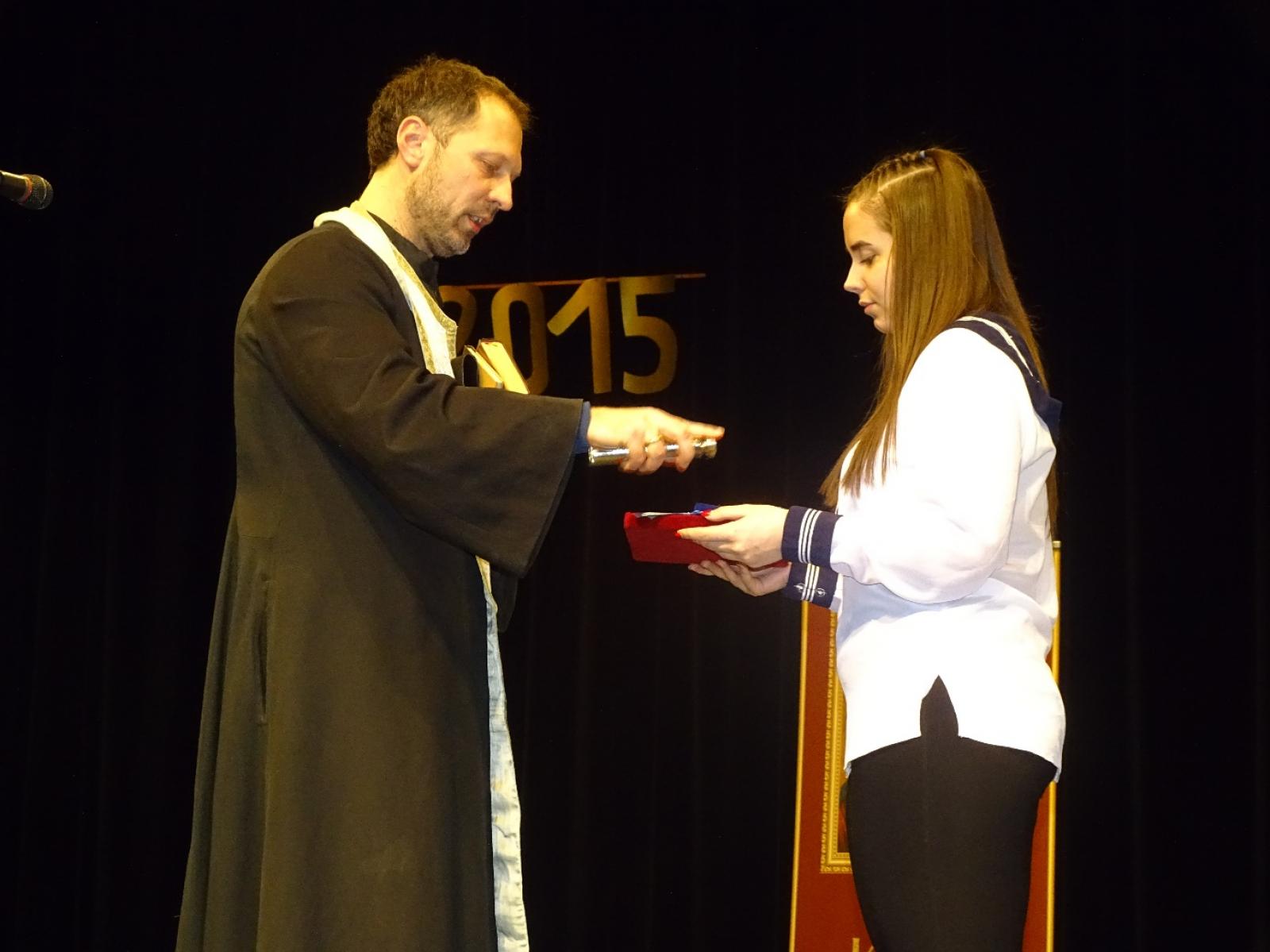 Ezután Petőné László Katalin igazgatónő köszöntötte az ünnepelteket. A diákok szalagjait Horváth Éva osztályfőnök tűzte fel.