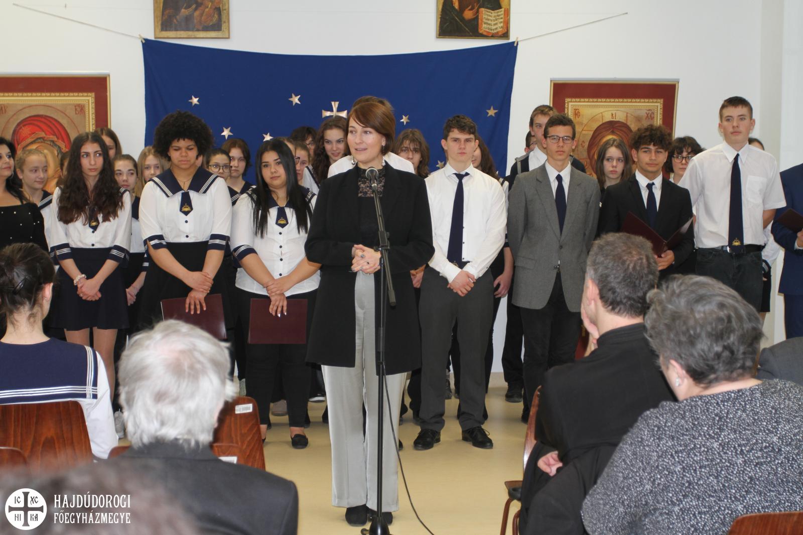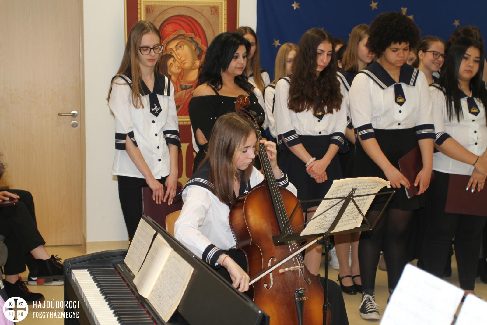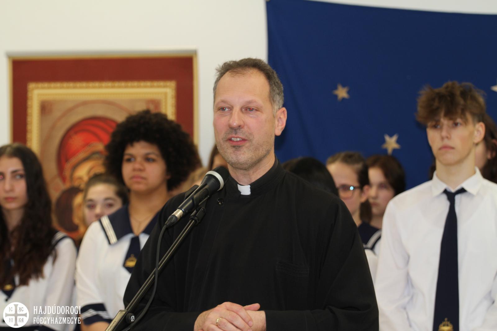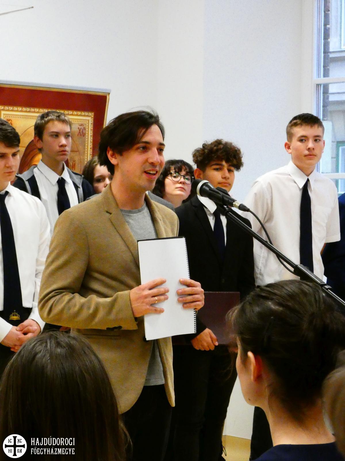 Az ünnepséget énekével beragyogta az iskola évről-évre szebben szóló kórusa, Tóth András görögkatolikus színművész pedig Weöres Sándor Harmadik szimfónia című versét adta elő. Az egyéni és csoportos fellépők mind-mind megcsillogtattak valamit abból a tökéletességből, amiről Sándor atya beszélt.