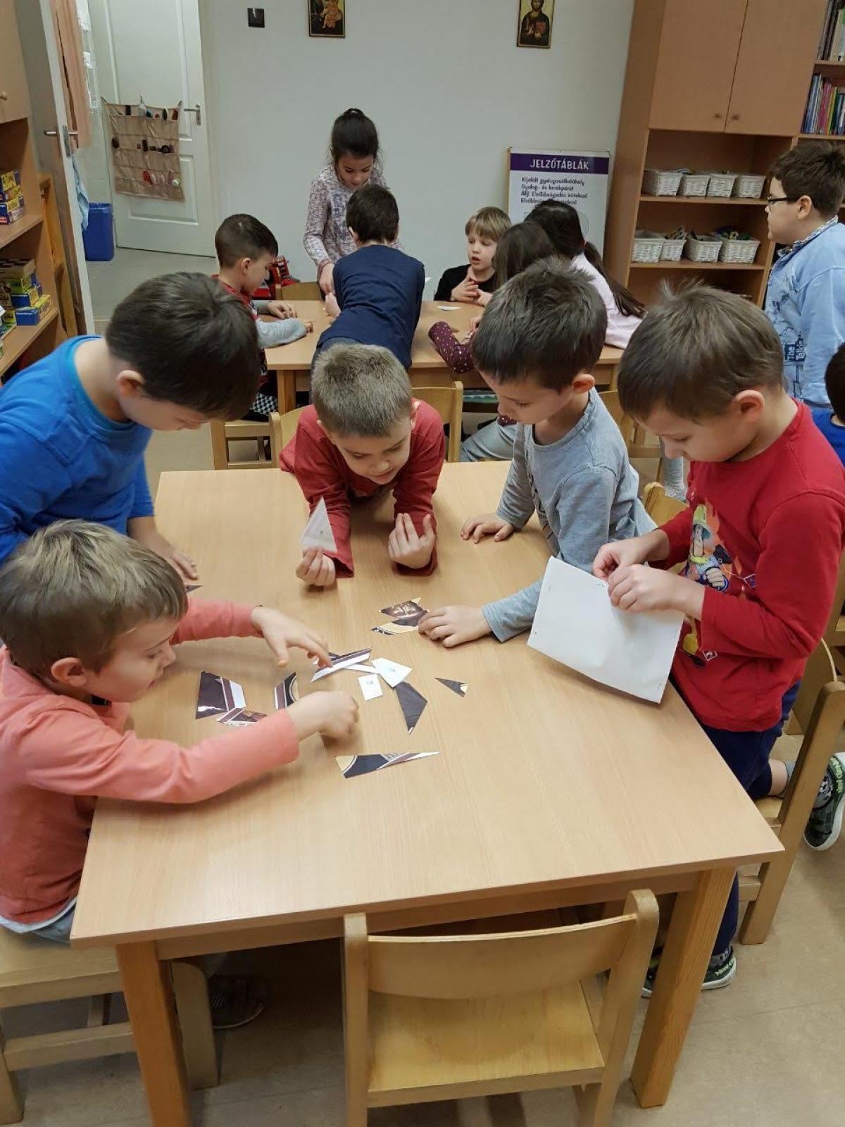 Kedden Lívia néni táncházzal szórakoztatta a gyerekeket, szerdán, Ovis Liturgián vettek részt, és az óvodába visszaérve a Katica csoport érdekes puzzle és kirakós játékokkal lepte meg a csoportokat, egymás között versenyezhettek is a bátrabbak.