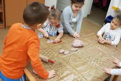 Ez idő alatt az óvodában maradt többi csoport sem unatkozott, hisz Mariann és Anett néni számos kézműves és kifestős feladattal készűltek, volt só- liszt gyurmázás, hárfa díszítés, varrás, ragasztás, festés, színezés, mindenki kedve szerint választhatott. Az elkészült remekművekből kiállítást is rendeztek, melyet az óvoda apraja nagyja csodálhatott meg az óvoda előterében.