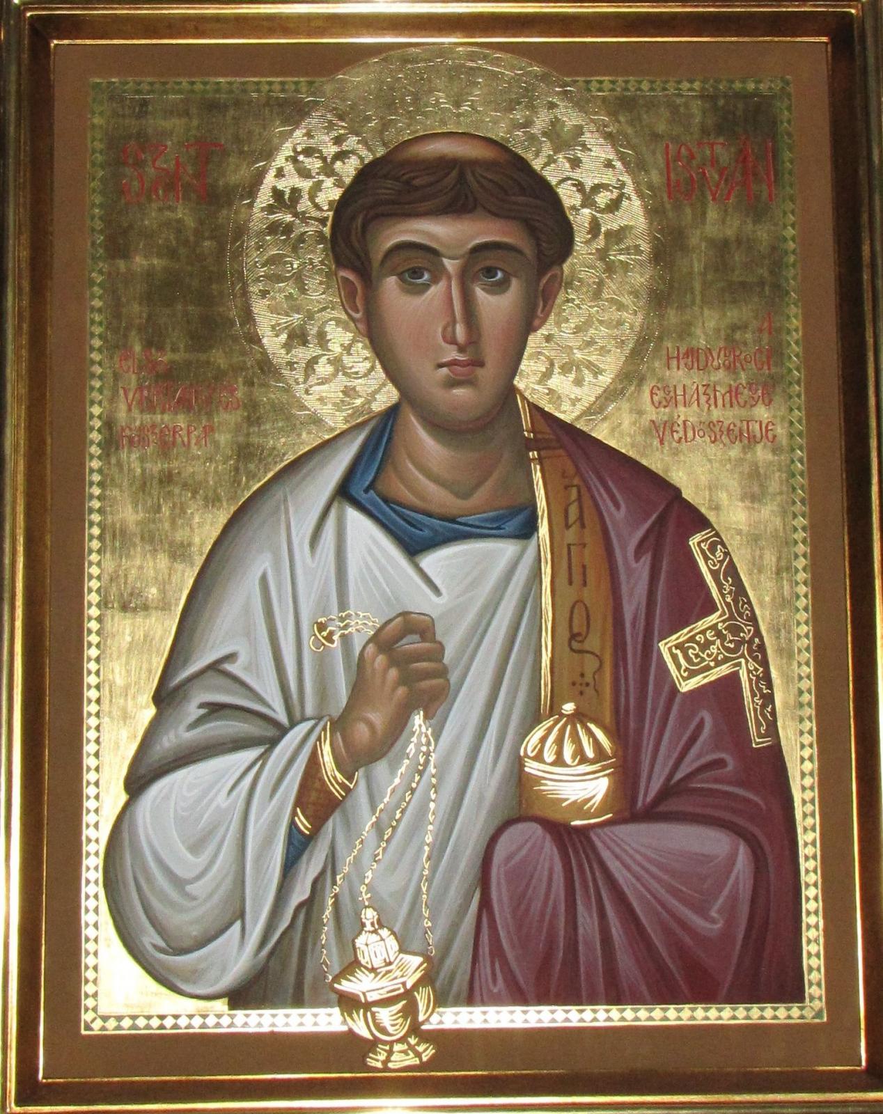 Az Apostolok Cselekedetei szerint elsőként kiválasztott bölcs és Lélekkel eltelt diakónus elsőként szenvedett vértanúságot is (33-36 között), amikor a hivatalos zsidó kultuszt megbírálva magára vonta a templomi elöljáróság haragját. Kivégzésekor ruháit Saul, a későbbi Szent Pál őrizte. A Hajdúdorogi Főegyházmegye védőszentje.
