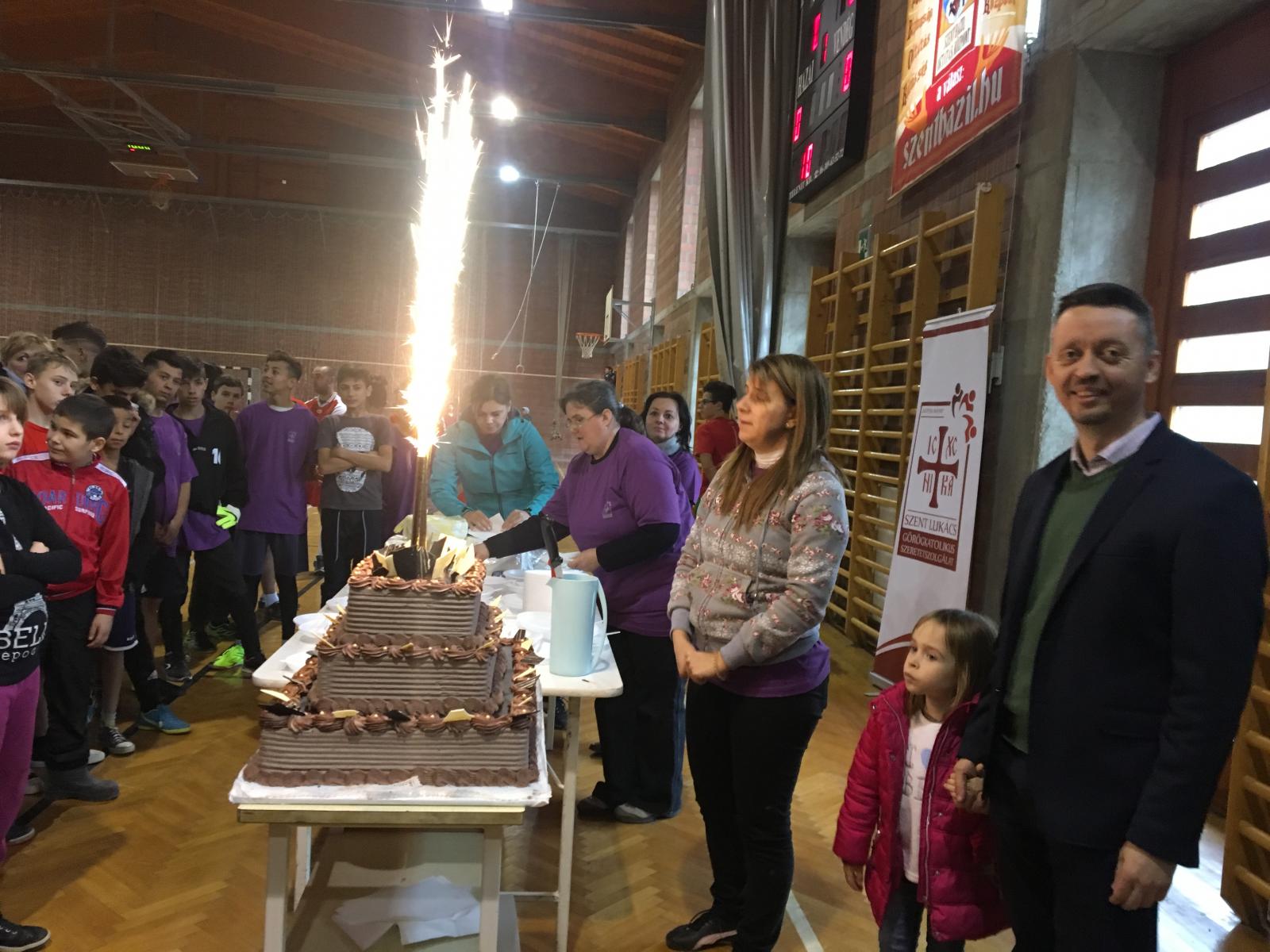 A finom ebéd után került sor a Szent Lukács Görögkatolikus Szeretetszolgálat három emeletes születésnapi tortájának elfogyasztására.