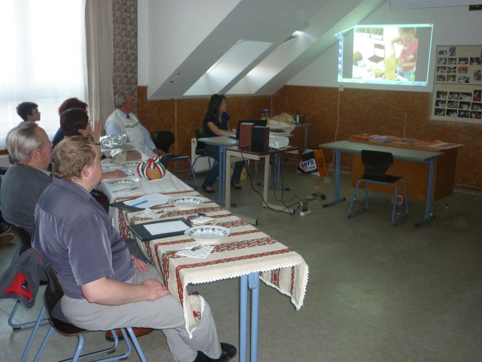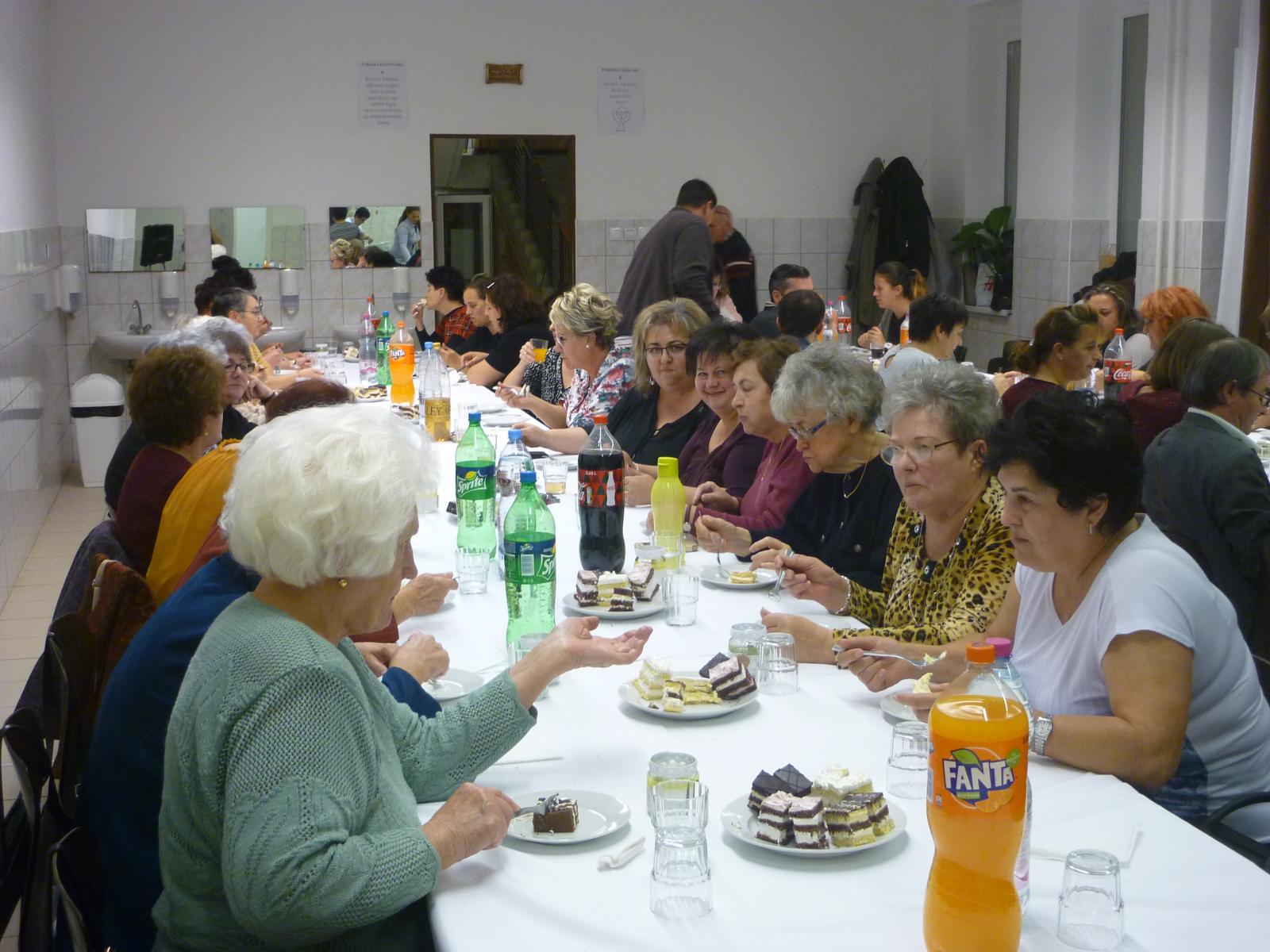 A vacsora után kötetlen beszélgetés kezdődött. Jó volt látni a régi és az új generációt, ahogyan megtalálják a közös hangot. Természetesen előkerültek az unokák fotói, felelevenedtek a régi emlékek. Megható volt így együtt lenni, felidézni a közös kirándulásokat, vidám programokat. Újra élhettünk egy – egy emlékezetes pillanatot, táborozásokat. Persze a tanítás sem maradhatott el, mint téma, hiszen még ma is jó tanácsokkal tudnak szolgálni a „Nagy Öregek”.
