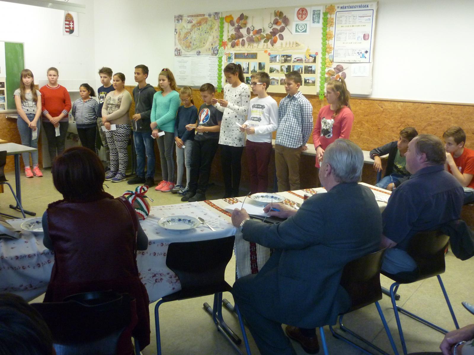 Megízlelhettük a kukoricakásás töltött káposztát, a cinkét, a krumplislángost, vagy az édes puliszkát. Nagy keletje volt a csörögének, és a káposztás lángosnak is. Köszönet érte a kedves Szülőknek, akik elkészítették és feltálalták a sok –sok finomságot. Az alsó tagozat ezeken kívül roma hagyományőrző előadáson vett részt a művelődési házban, majd betekinthettek a tésztagyártás, fazekasság, hímzés rejtelmeibe. Folyamatos programként fotókiállításon, környezetvédelmi bemutatón és előadáson, valamint íjászaton vehettek részt diákjaink.
