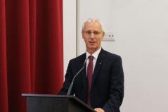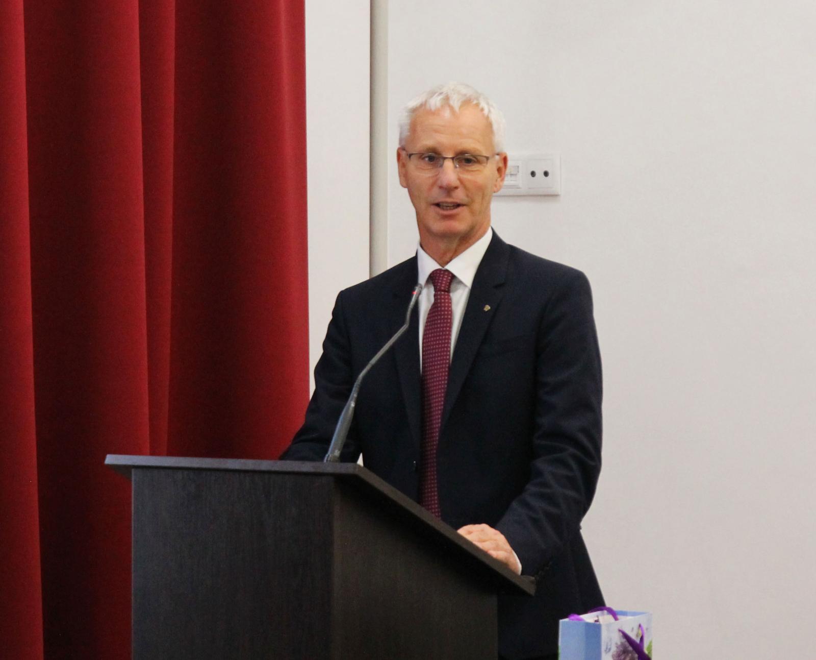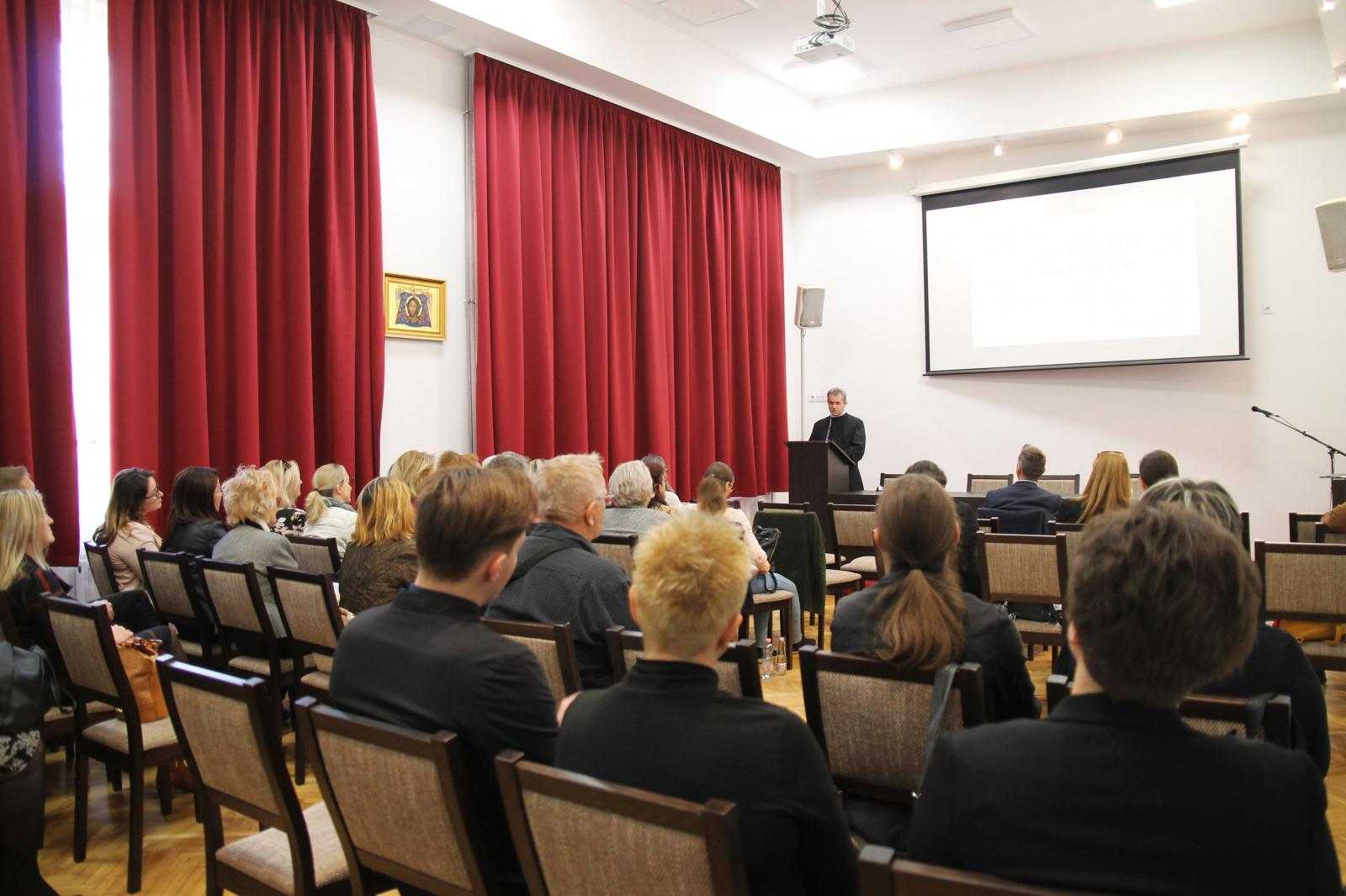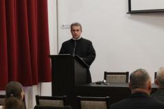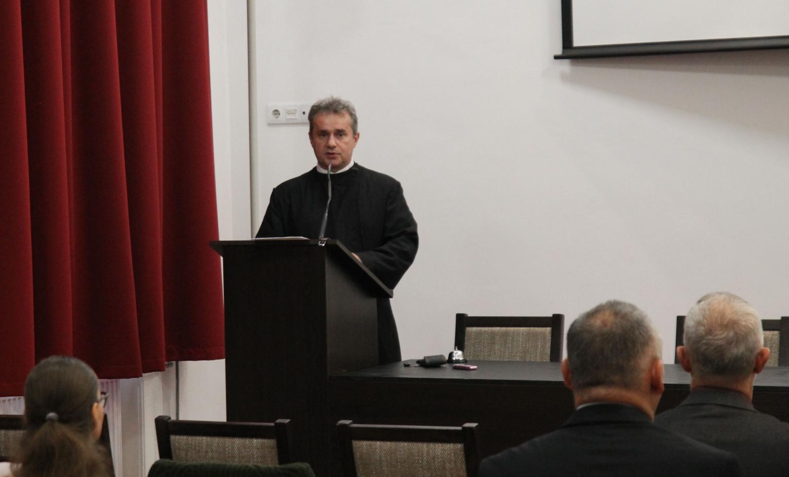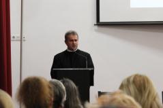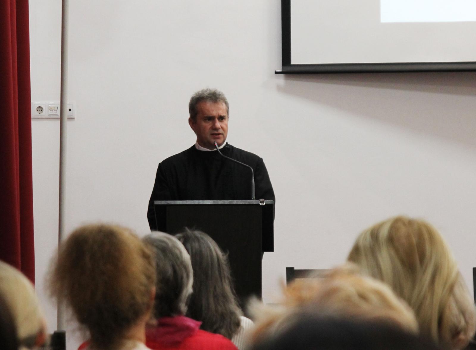 Dr. Papp Miklós morálteológus előadásába bekapcsolódott a Debrecenbe óvodaátadó ünnepségre érkező Soltész Miklós, a Miniszterelnökség egyházi és nemzetiségi kapcsolatokért felelős államtitkára, aki köszöntötte a Szent Lukács Görögkatolikus Szeretetszolgálat lelki napjának résztvevőit.