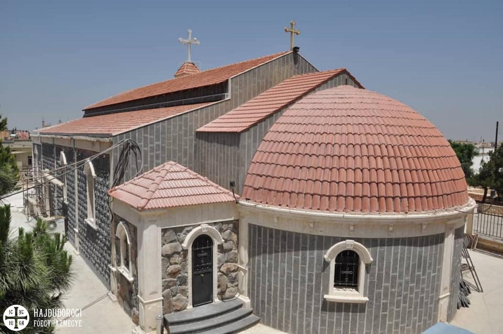 Az első görögkatolikus adományt 2017. júniusában vitte ki a metropolita. Az akkor még romokban álló templomot személyesen is meglátogatta. A 2011 óta dúló háború több alkalommal is szörnyű pusztítást végzett ebben a melkita görögkatolikusok által lakott kis településen, mivel a frontvonal közvetlenül a falu határában húzódott. Sok ember meghalt, sokakat túszul ejtettek, akikért többször is fizettek váltságdíjat, de soha többé nem látták őket. A sokat szenvedett falu életében nagy fordulatot tett, amikor a magyar főpásztor személyesen meglátogatta őket, és elvitte a magyarok adományát. Azóta is többször kifejezték hálájukat, és ragaszkodtak hozzá, hogy akkor fogják majd fölszentelni az újjáépült templomot, amikor a metropolita újra ellátogat hozzájuk. Az egyeztetések után erre a napra esett a választásuk. A templom falára táblát is helyeznek, amely az utókor számára is tanúsítja a magyarok nagylelkűségét és testvéri szeretetét.