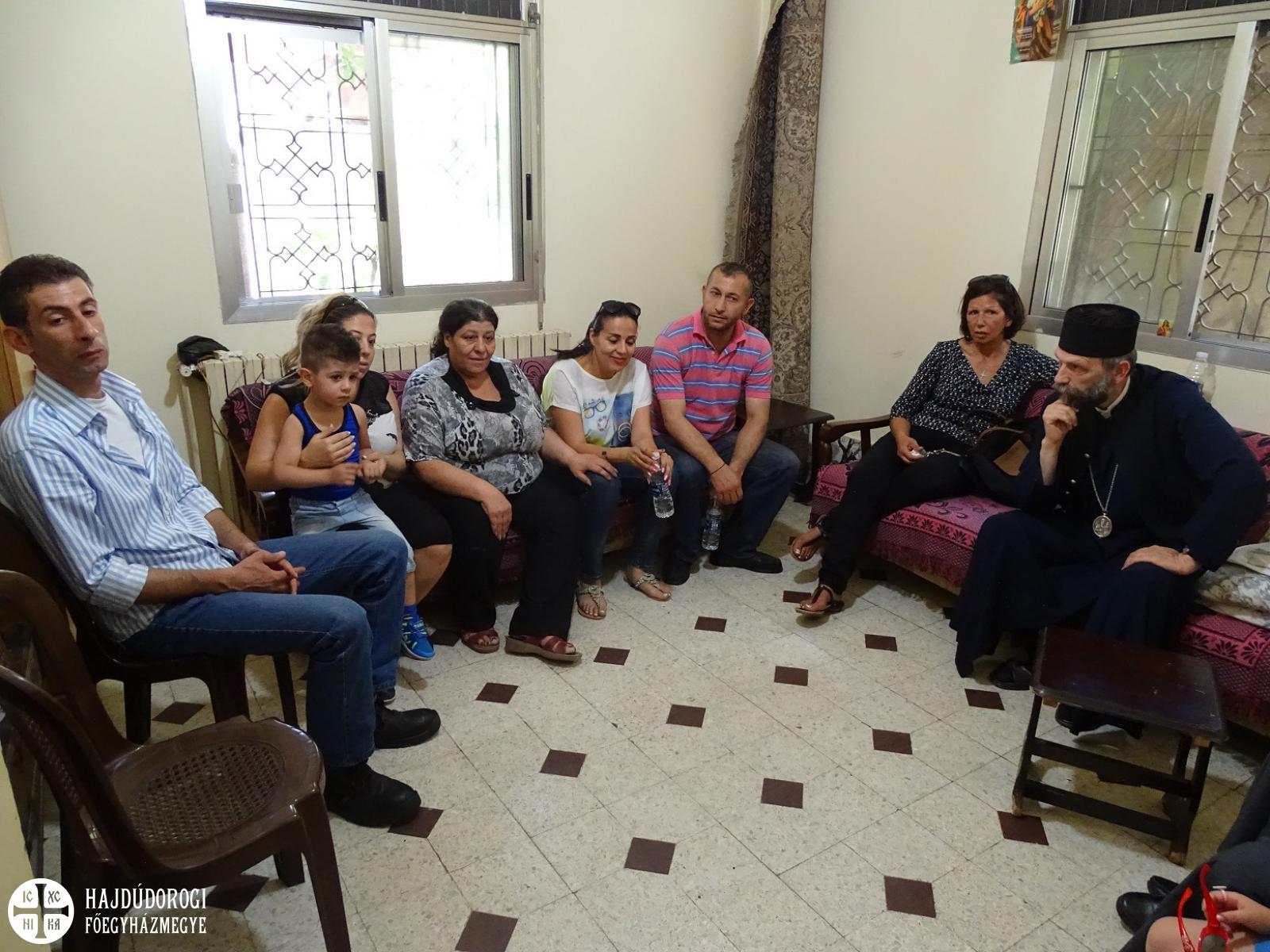 Az iskola után egy Szíriából menekült családot látogattunk meg. A városukat 2012-ben foglalták el iszlamisták. Hangosbemondón kürtölték szét a városban: „Keresztények Bejrútba, alaviták a koporsóba!” (Az alaviták egy siíta vallási kisebbség.) Mindenüket hátrahagyva kellett menekülniük. Zahléban otthonuk egy szűk kis lakás, szoba és konyha, ahol három generáció él, a súlyosan beteg nagyszülők, az ő várandós leányuk a férjével és kisfiukkal. A keresztény menekültek megpróbálják elkerülni a táborokat, hiszen a szunnita muszlim többségű feszült közeg veszélyt jelent rájuk, ezért megtakarított pénzükből és az egyház segítségével lakást bérelnek, még akkor is, ha ennek fenntartása óriási nehézséget jelent számukra.