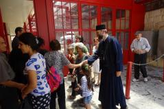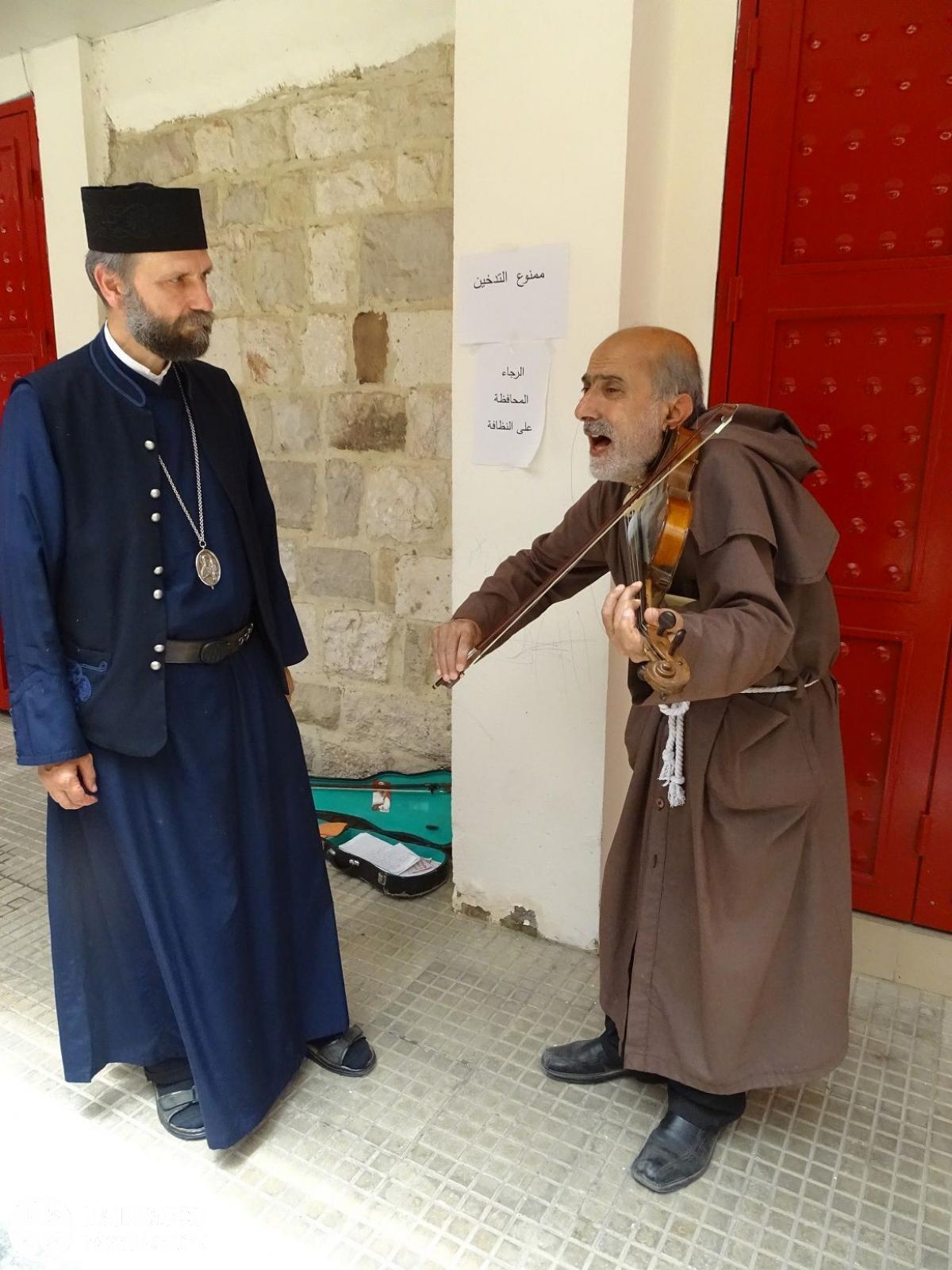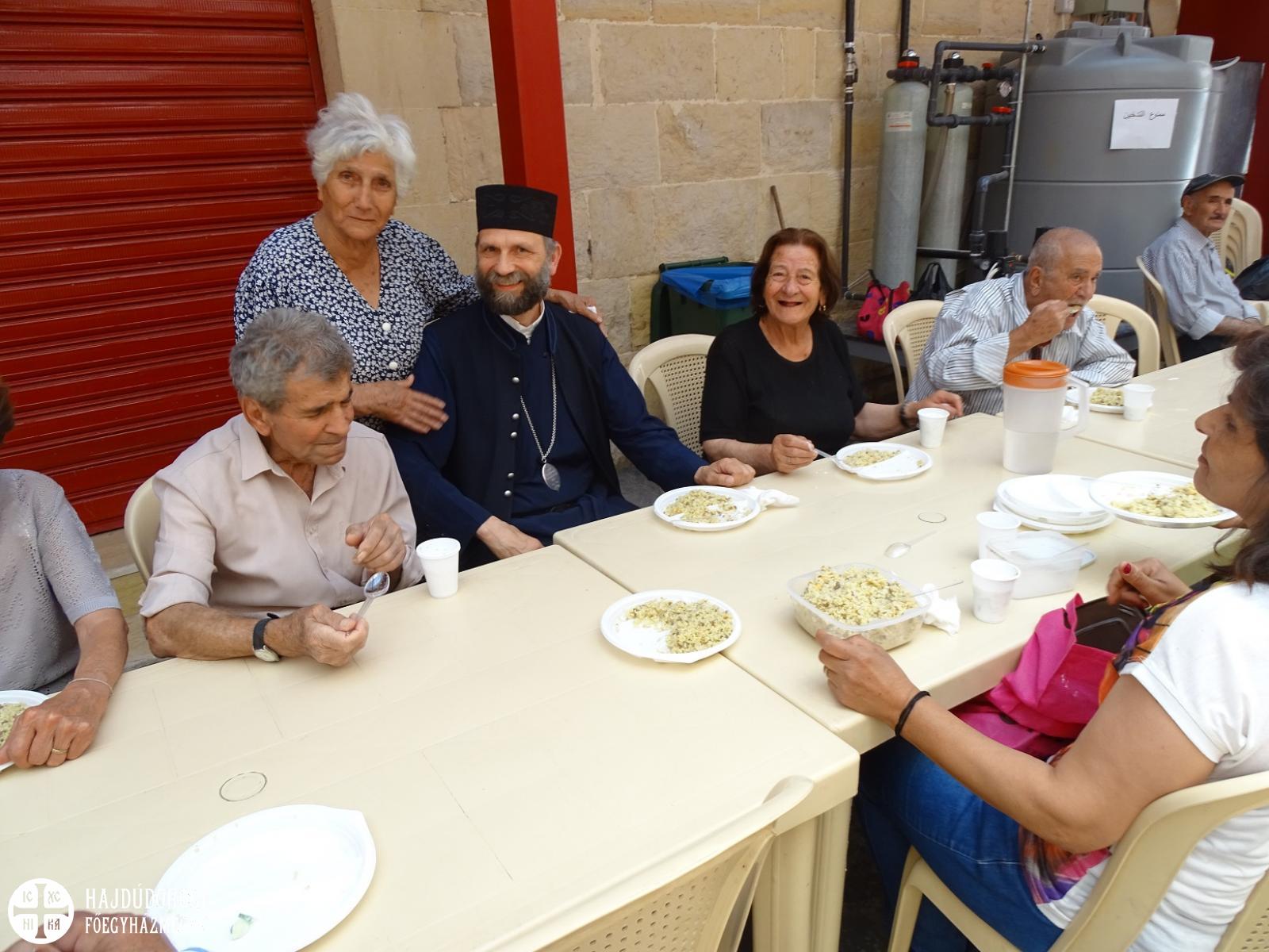 Ezt követően meglátogattuk az érsekség által működtetett étkezdét, ahol naponta mintegy ezer libanoni és szíriai rászoruló kap meleg ételt. Még a szakács is szíriai menekült, aki így kapott munkát az egyháztól. Természetesen sok helyi önkéntes is besegít az ételosztásba, például egy ferences testvér rendszeresen jár nekik muzsikálni. Látogatásunk számukra különös ünnepnek számított, maguk közé fogadtak, asztalukhoz ültettek minket.