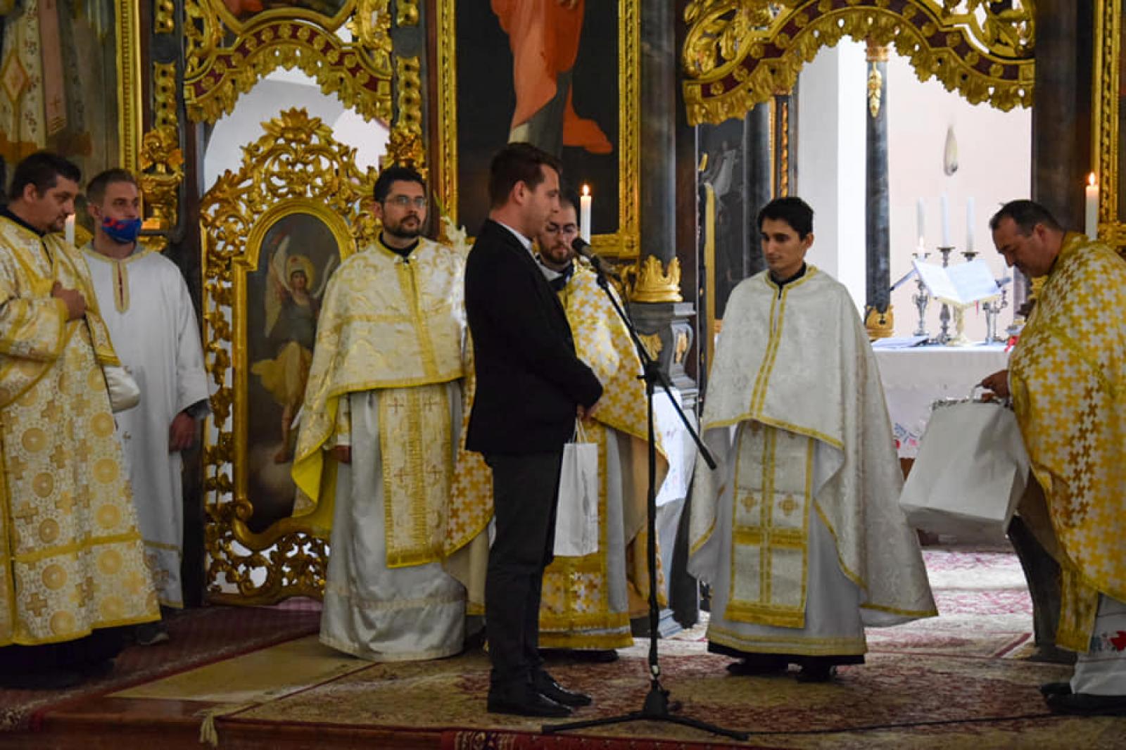 Horváth Zoltán polgármester úr is örömét fejezte ki arra vonatkozólag, amiért részese lehetett a hívekkel együtt ennek a szép szertartásnak, mert Hajdúdorog számára is egy nagy ajándék, amikor egyik szülöttét pappá szentelik, és első Szent Liturgiáját ebben a Székesegyházban végzi. Arra kérte a Jóistent, hogy mutassa meg Miklós atyának azt az utat, amin a rábízottakat vezetheti.