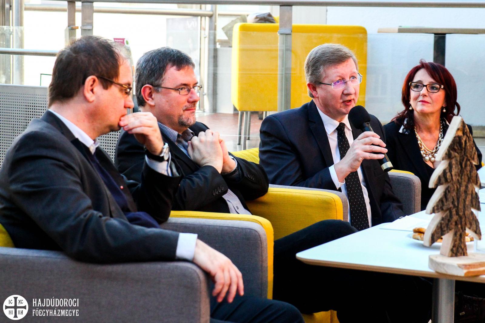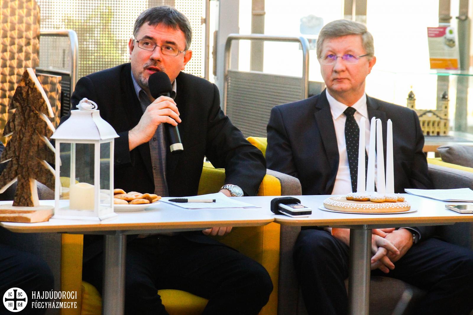 A görögkatolikus egyházat Dr. Seszták István, főhelynök képviselte. „Látványos programokról hallhattunk, és mégis az egyik legcsendesebb ünnepre készülünk” – mondta. „Ezek a látványos történések arra kell, hogy felhívják a figyelmünket, hogy találjunk rá az igazi kincsekre. Talán önmagunkra - legyenek ezek az alkalmak arra felkiáltójelek, hogy tudjunk rátalálni a legnagyobb kincsre, aki érkezik hozzánk, magára az Istenre. Ez egy olyan titok, amit nehéz rendezvényekbe foglalni, mégis erre törekszünk.” Megemlítette, hogy december 10-én, Úton betlehembe címmel szervez a görögkatolikus egyház karácsonyi vásárt az Attila téren, melyen az egyházközségeink, intézményeink mutatkoznak be, december 15-én pedig a Lautitia kóruscsalád ad nagyszabású koncertet a Kölcsey Központban.