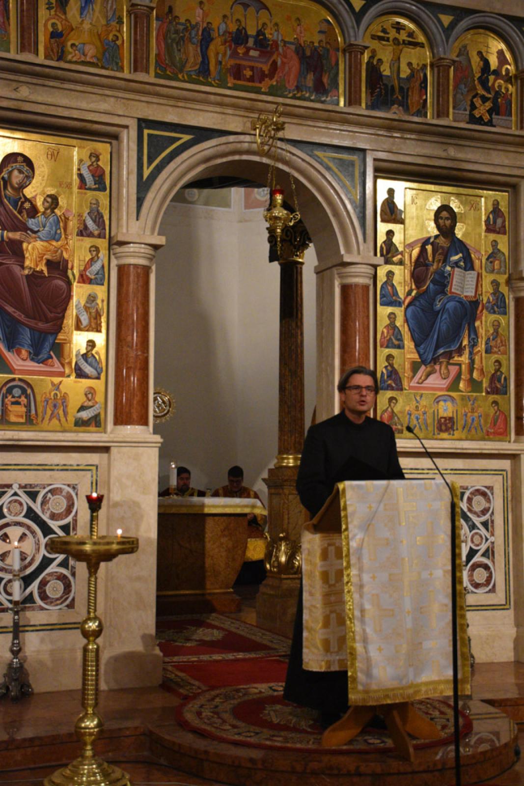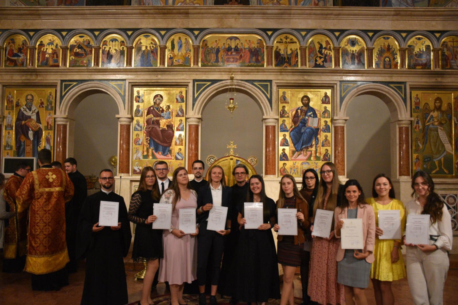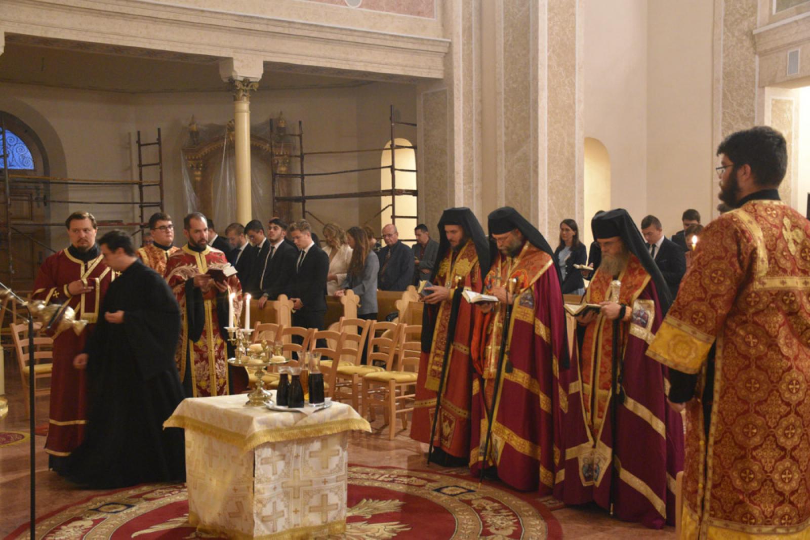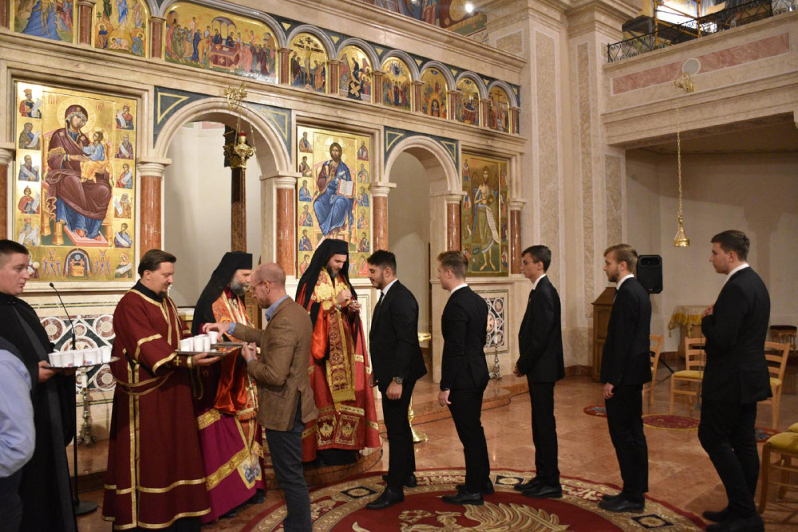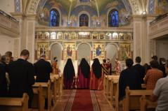 Az idei évben a Szent Kereszt Felmagasztalásának ünnepi előesti vecsernyéjén tartottuk intézményünk tanévnyitóját a nyíregyházi Szent Miklós-székesegyházban, igazodva a nemzetközi patrisztikus konferencia nyitónapjához. Így vendégeink között nem csak a Görögkatolikus Metropólia főpásztorai: Kocsis Fülöp, érsek-metropolita, főiskolánk nagykancellárja, dr. Orosz Atanáz és Szocska Ábel megyéspüspökök imádkoztak főiskolai közösségünkkel, hanem a konferenciára érkező professzorok is: Željko Paša, SJ, a Pápai Keleti Intézet dékánja; Giulio Maspero, a római Szent Kereszt Egyetem dékánja; Puskás Attila atya, a Pázmány Péter Katolikus Egyetem Hittudományi Karának dékánja és Bagyinkszki Ágoston atya, a Sapientia Szerzetesi Hittudományi Főiskola rektorhelyettese.