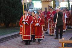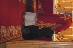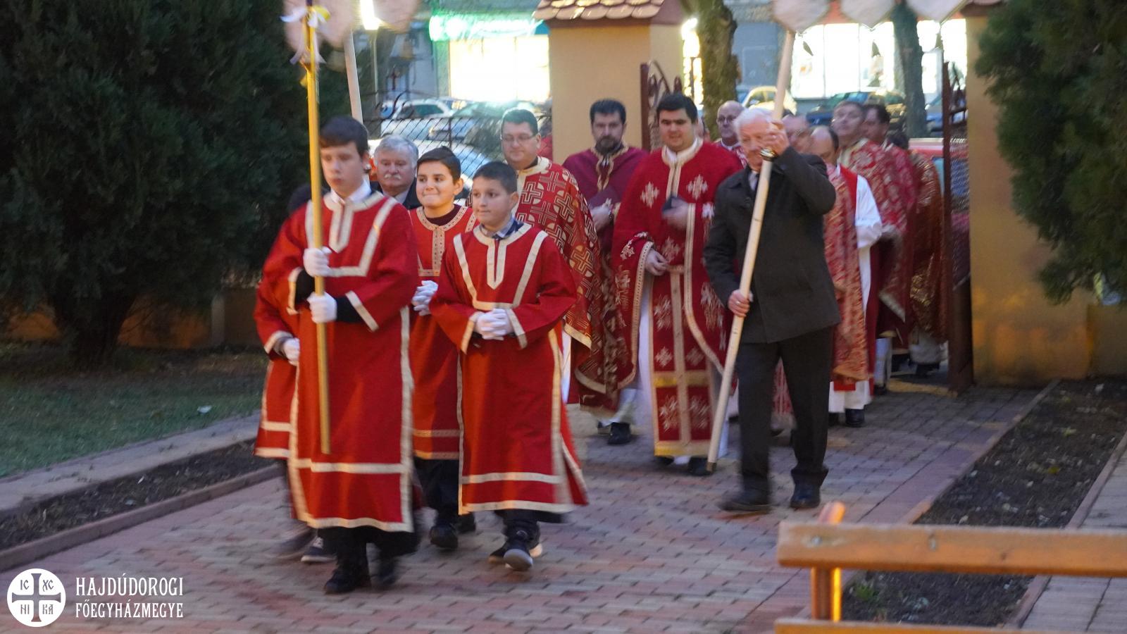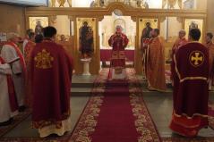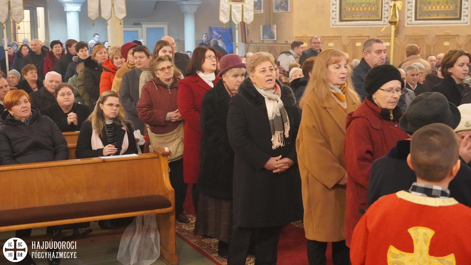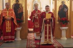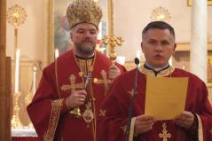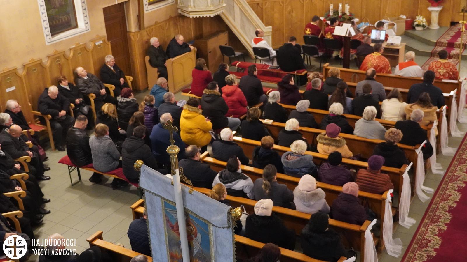„Ünnepnap van – mondta a főpásztor – és az ünnep egyben öröm is, az öröm pedig Istennek az emberi szívekben végzett munkájának érezhető jele. (…) Az ember szentségre hivatott. Álljunk meg ezért egy pillanatra a szentség fogalmánál. Jelenlétemet ma este ezen az örömünnepen, elsősorban a templombúcsú maga indokolja. Azt akartam, hogy együtt imádkozzunk, főpásztor, pap, hívek. Az egyház imádkozik, a közösség ünnepel, és ez is jele a hitnek, imádságnak és kegyelemnek. Másodsorban azért vagyok jelen ma este ebben a templomban, hogy diakónussá szenteljek egy fiatalembert, Nagy Csongort, ennek a magyar görögkatolikus vidéknek a szülöttét, aki az egyházi rend diakónusi fokozatát kapja. Egy fiatalember vállalja a diakonátust abban a reményben, hogy a papságra történő készület újabb lépcsőfokára léphessen. Ebben is ott van a szentségre való meghívás kenetének illata. Harmadik ok, amiért itt vagyok ma este az, hogy kinevezzem és beiktassam hivatalába ennek a közösségnek az új parókusát. Mindezek az okok ahhoz vezetnek bennünket, ami a mai ünneplésnek az lényege, nevezetesen a szentség keresése és a szentségben való élet.” A főpásztor kifejtette többek között, hogy az új diakónus felszentelése az egyház megújulásának és erősödésének is jele, amely frissességet hoz, ugyanakkor arra buzdítja a közösséget, hogy az ima és a támogatás révén közel tudjon maradni papjához, aki többek között az atya szerepét is betölti a közösségben. A Szent Liturgiában a megyéspüspök megemlékezett id. Pallai Béláról is, aki 33 évig szolgálta a szatmári görögkatolikus híveket.