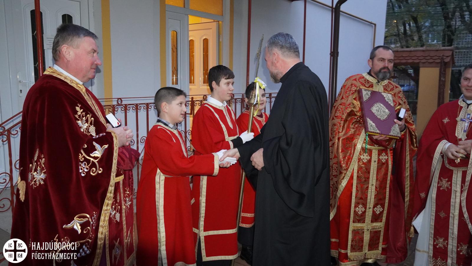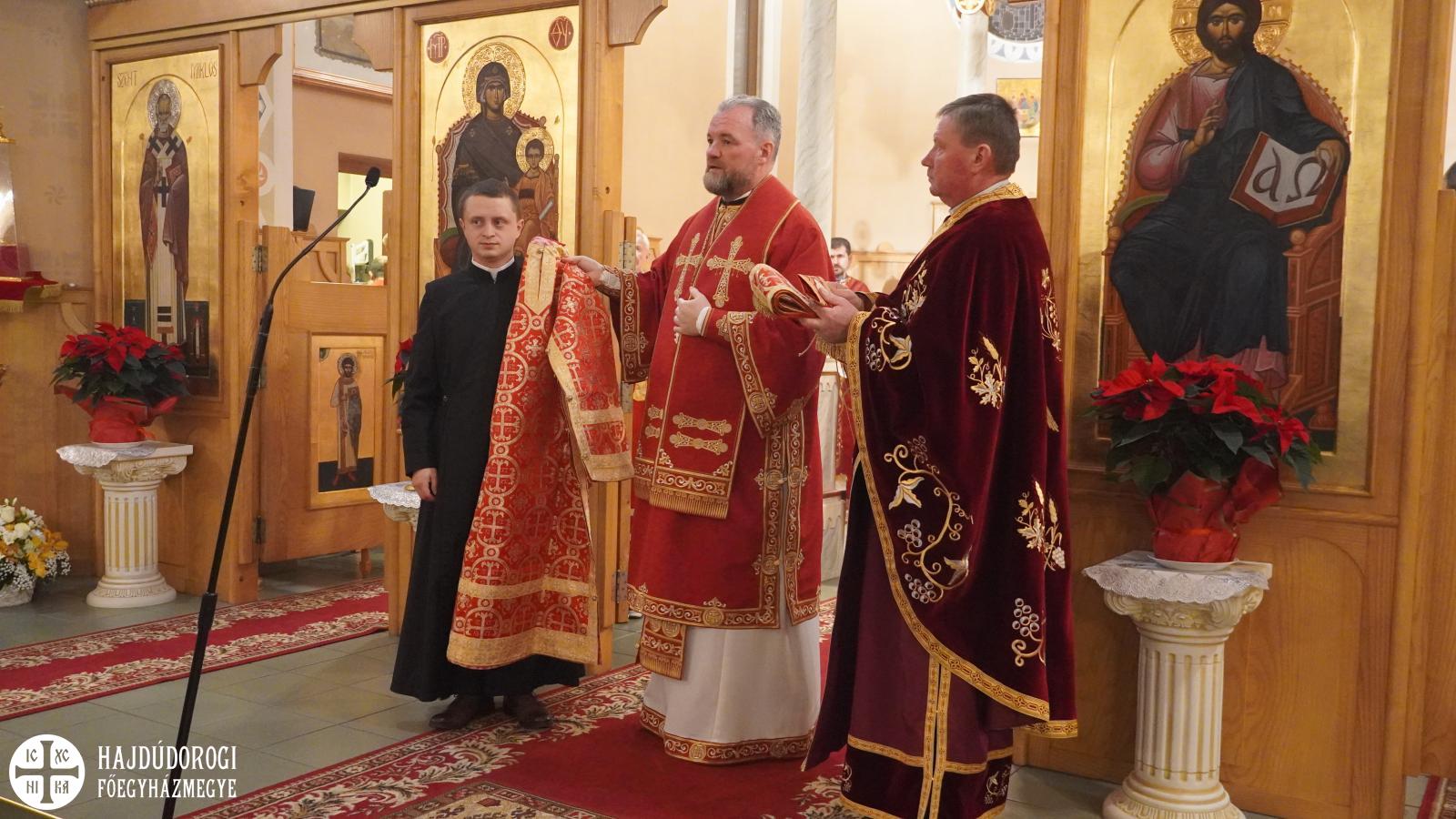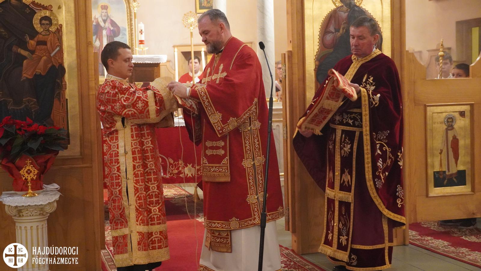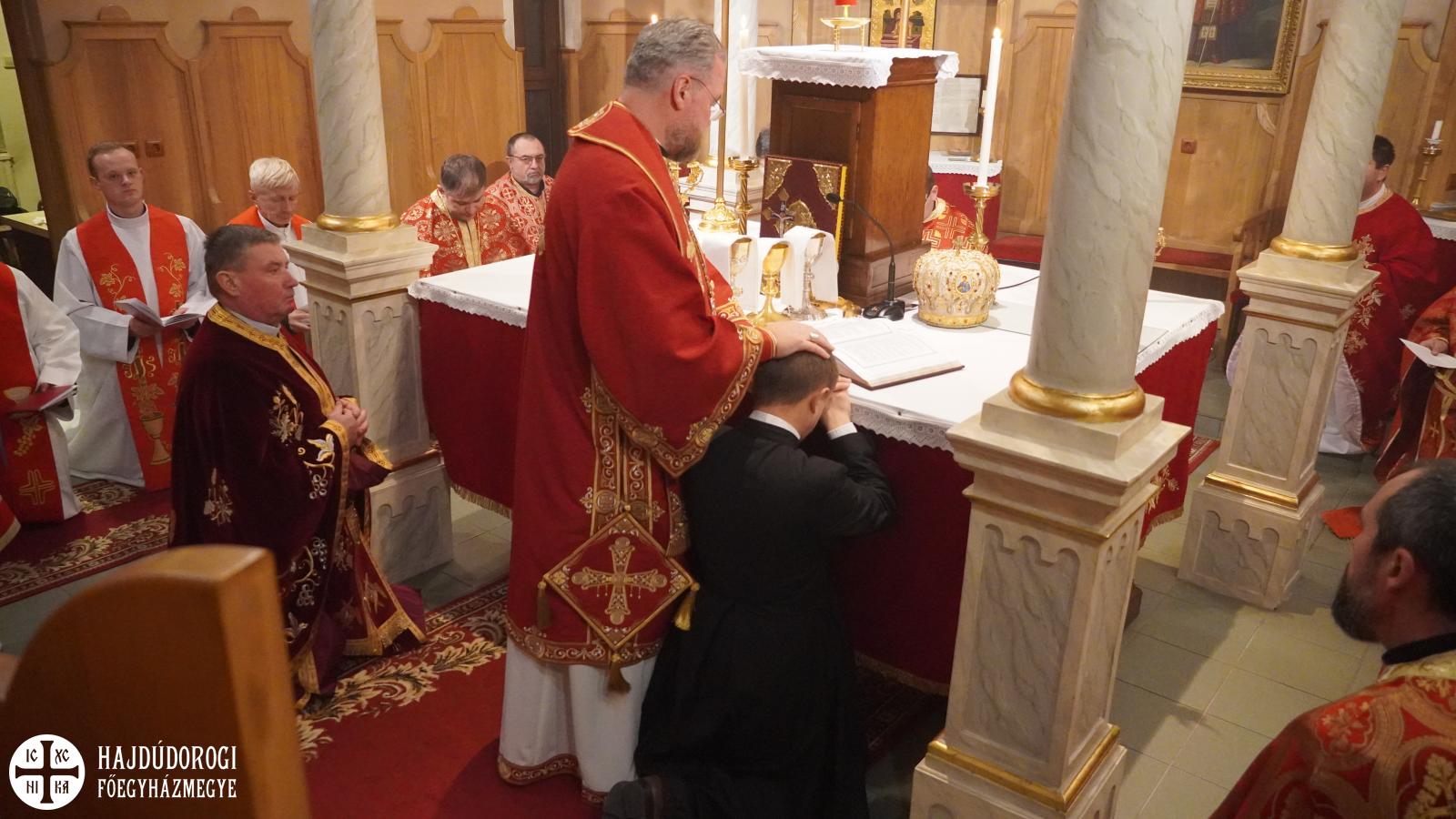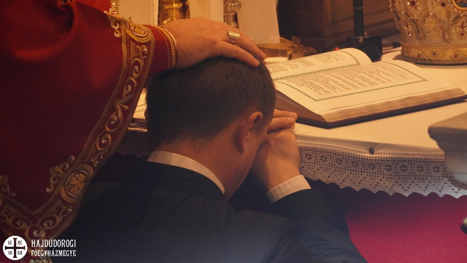 A diakónusszentelés szertartása előtt a jelöltet Kozsán István mikolai parókus mutatta be, majd az esperessel a királyi ajtón keresztül bevezették őt a szentélybe. A szentelésben elhangzott imák és könyörgések után, a jelenlévő áldozópapok és a hívek görögül énekelték az AXIOSZ-t.