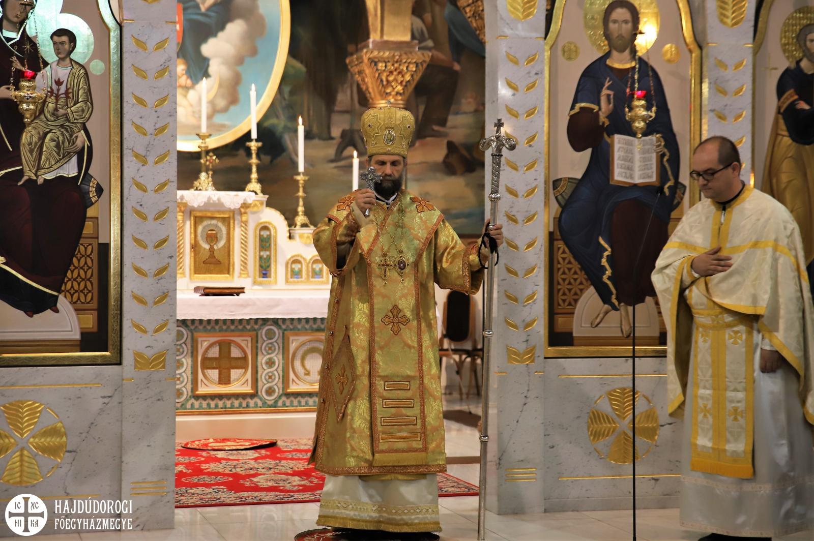 A szertartás végén, az elbocsátó áldás után, Seszták István atya kért szót. A debreceni főhelynök ekkor emlékeztette a híveket arra, hogy tíz évvel ezelőtt szentelték Fülöp érsek atyát püspökké. „Ma sokan imádkoztunk Zoltán atyáért, de ezen a Szent Liturgián a belső hangtól vagy méginkább a Szentlélektől indíttatva, örömteli kötelességünk, hogy különösen is imádkozzunk Fülöp atyáért, metropolitánkért, aki tíz éve részesült – talán akkor nem is akarta és azóta is sokszor vívódik önmagában – a püspökszentelés kegyelmi ajándékaiban. Azt kívánom, kívánjuk neki, emlékeztetve választott jelmondatára, hogy ez a „gyenge” köszöntés is adjon neki további erőt, erőforrást, segítséget szolgálatához, most pedig imáinkkal és imáinkban éltessük őt!" - zárta gondolatait Seszták atya.