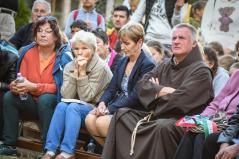 – Minden mise végén elénekeljük a Himnuszt, és a nyári ittlétem alkalmával tudtam meg, hogy Kölcseynek emlékháza van Álmosdon. Rácsodálkoztunk, hogy Székelyhídhoz milyen közel van egy Kölcsey-emlék; akkor határoztuk el, hogy gyalog is átjövünk ide. A Himnusz szerzője a mi gyerekeinknek példaképe, eszményképe lehet, hiszen korán elveszítette látását egyik szemére, árván nőtt fel. Gondok közepette nem elkeseredünk kell, hanem talpra állnunk és továbbmennünk, és úgy, hogy ha lehet, a nemzetünk asztalára még értéket is adjunk – válaszolta a Naplónak a zarándokút előzményeiről Böjte Csaba.