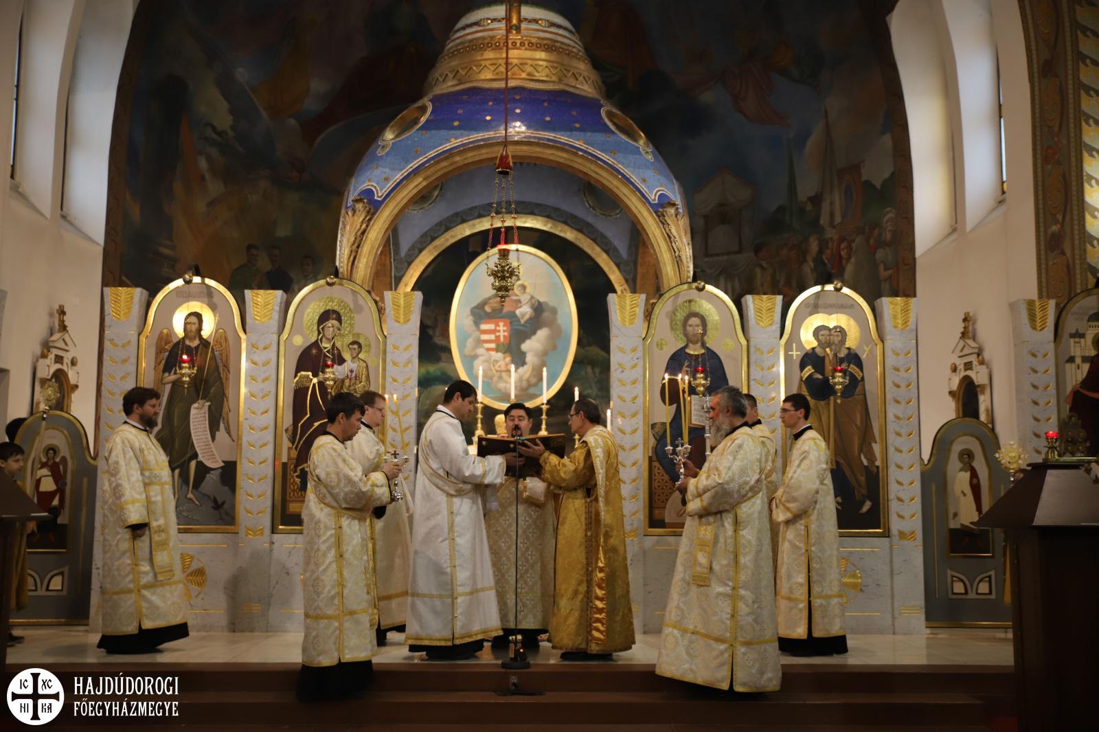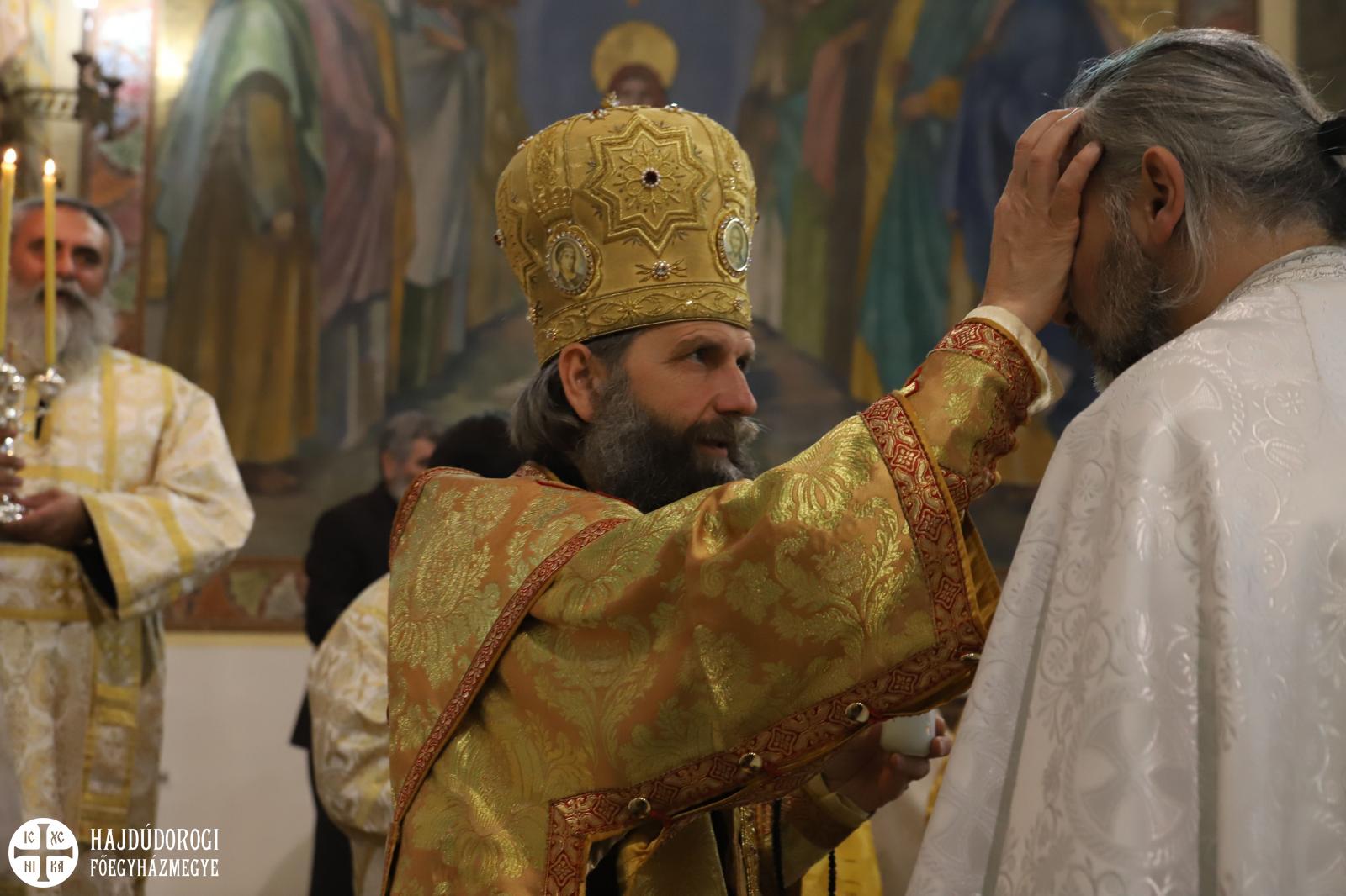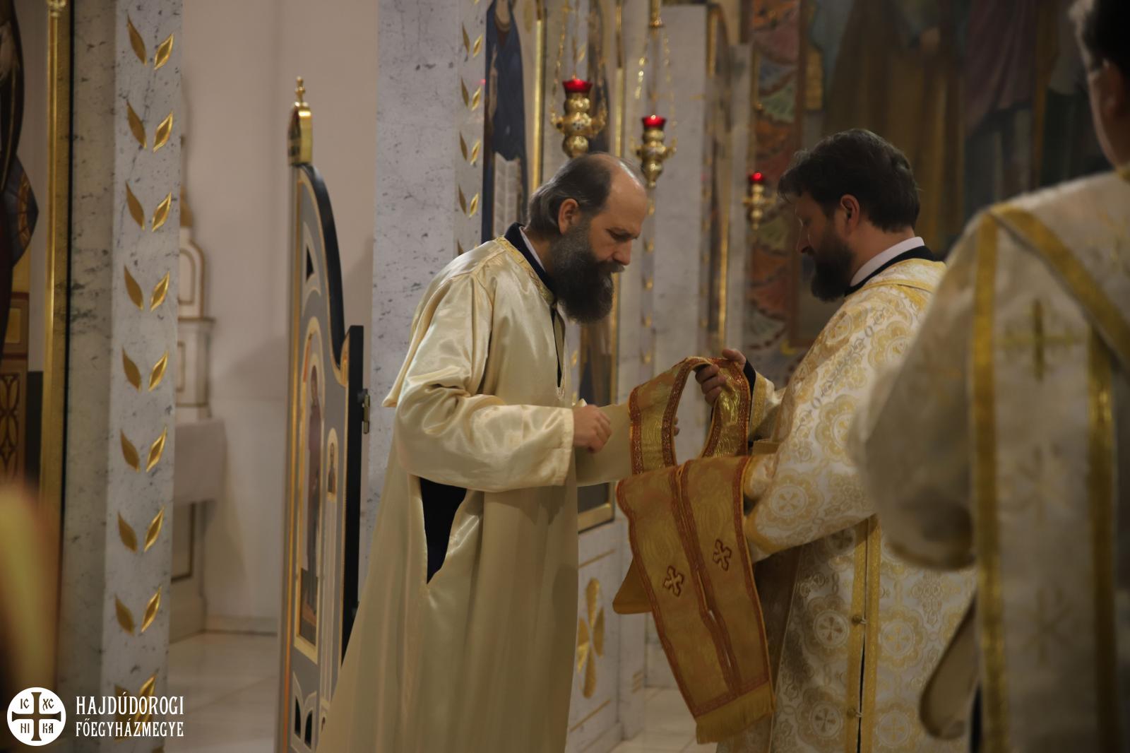 A diakónusszentelés mellett egy másik szép eseményről is megemlékeztek, hiszen kerek 65 éve annak, hogy Fodor István atyát pappá szentelték, ő az egész Metropólia legrégebben szentelt papja! Isten éltesse sokáig egészségben családja körében! A Szent Liturgia végén megszentelték a gyertyákat, Fodor István atya részvételével, majd mindenki hazavihetett belőle egyet. Az együttlétet miroválással pecsételték meg.
