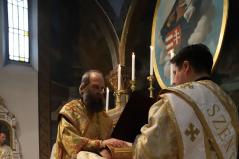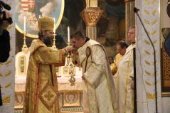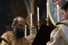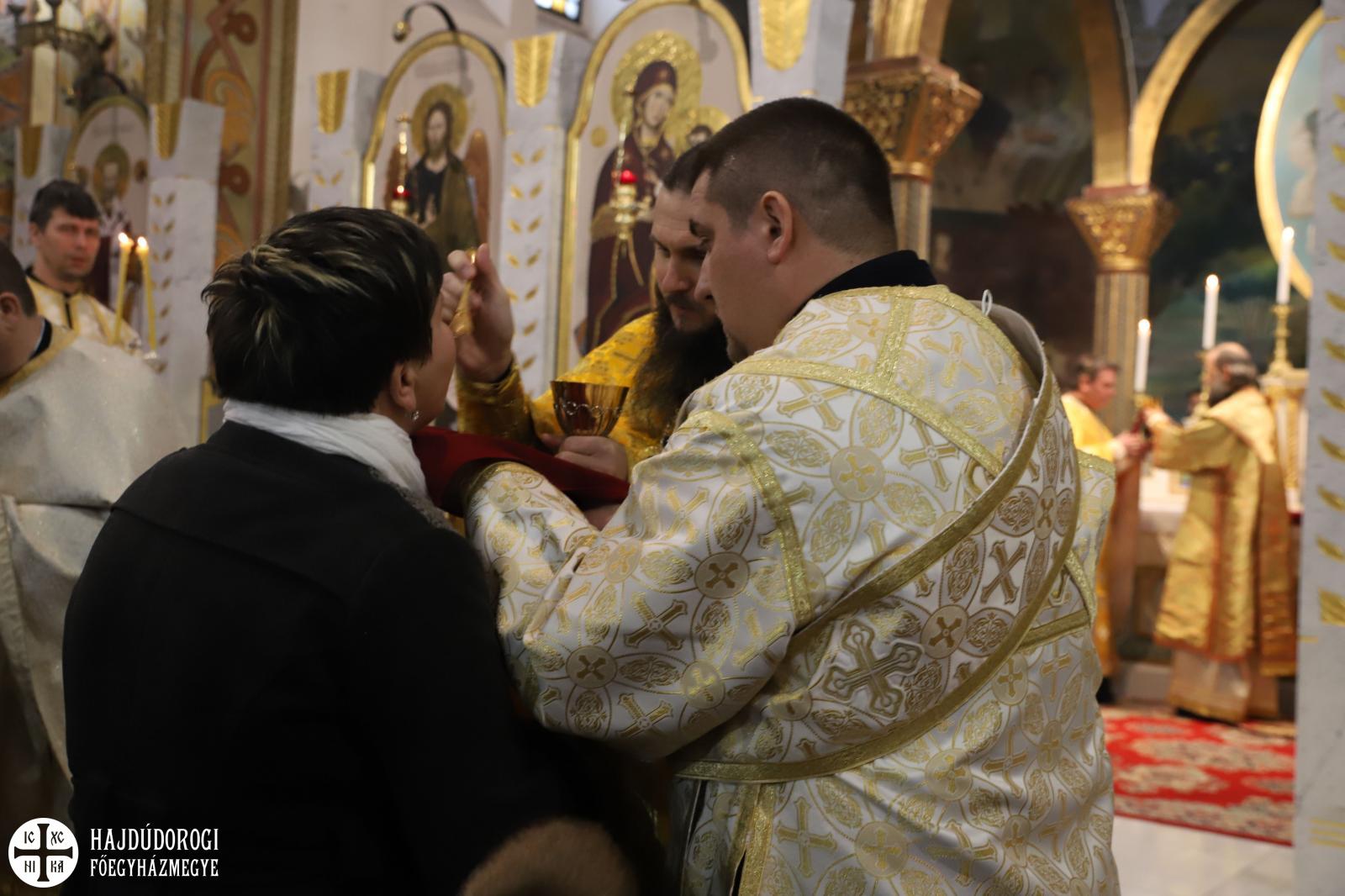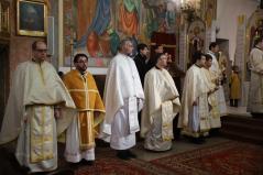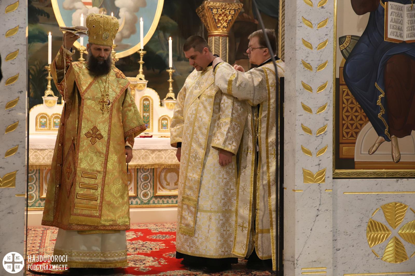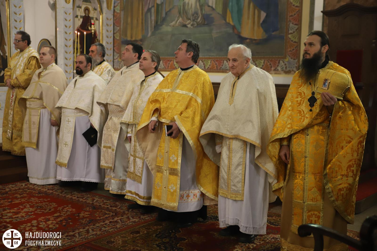 A diakónusszentelés mellett egy másik szép eseményről is megemlékeztek, hiszen kerek 65 éve annak, hogy Fodor István atyát pappá szentelték, ő az egész Metropólia legrégebben szentelt papja! Isten éltesse sokáig egészségben családja körében! A Szent Liturgia végén megszentelték a gyertyákat, Fodor István atya részvételével, majd mindenki hazavihetett belőle egyet. Az együttlétet miroválással pecsételték meg.