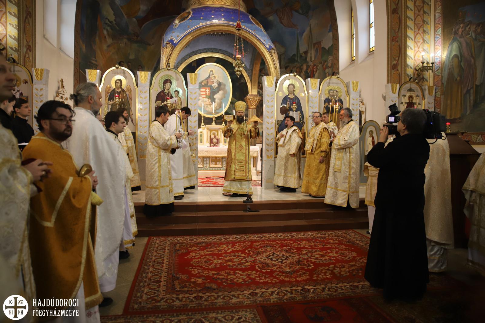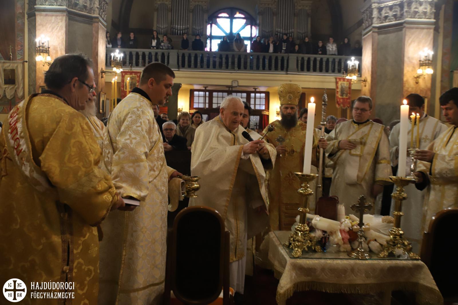Az evangélium szerint születése után a negyvenedik napon a Boldogságos Szűz bemutatta kisdedét a templomban. Itt a Messiásra várakozó öreg Simeon karjaiba vette a kis Jézust és őt a világ világosságának nevezte. Ezért hát a szentelt gyertya Jézus egyik legrégebbi jelképe. „Ez az ünnepünk is többet hordoz, mint amire gondolnánk” - kezdte Kocsis Fülöp metropolita. „Olyan sok tanítást adhatna ez a mai ünnep, sok az apró részlet benne. Viszont én csak egy mondatot szeretnék kiemelni. Ez az idős ember, Simeon a Lélek indíttatására ment el a templomba, hiszen azt az ígéretet kapta, hogy nem fog meghalni addig, amíg nem látja meg a Messiást. Nekünk is észre kell vennünk ezt az indíttatást, hogy meghalljuk. Egész életünkön át. Simeon hát engedelmeskedett.