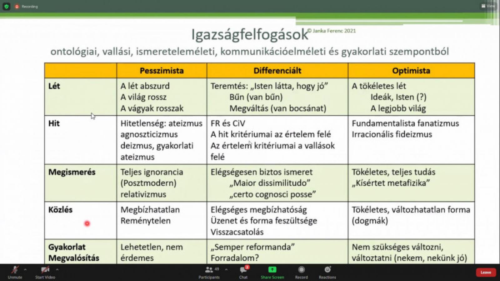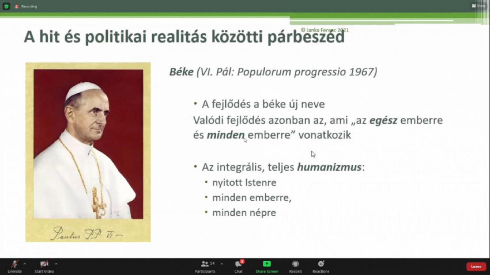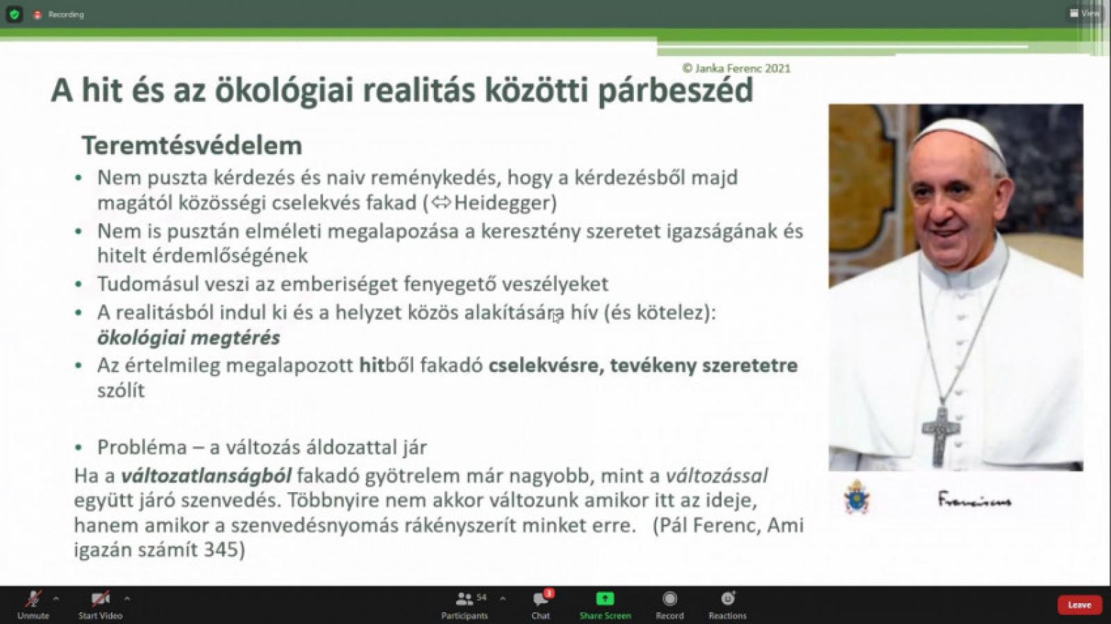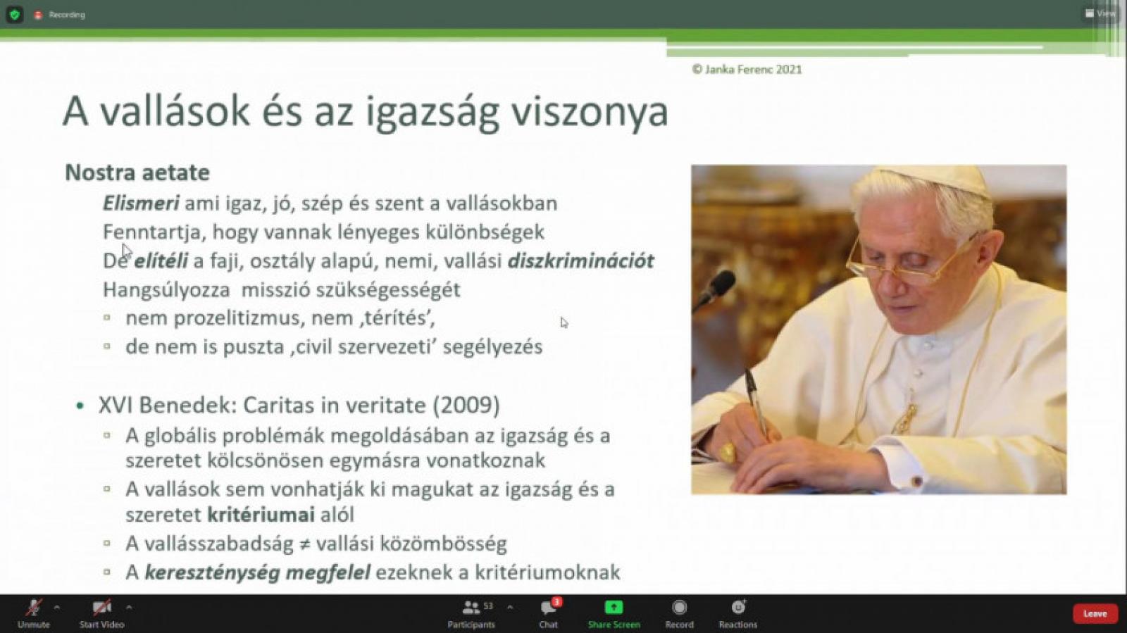 „A hit és a tudás igazsága a tevékeny szeretetben juthat kifejeződésre. Nyitottnak kell tehát lennünk az igaz válaszokra, az elkötelezett döntésekre, késznek kell mutatkoznunk a jobbító változásra és változtatásra” – zárta előadását Janka Ferenc.