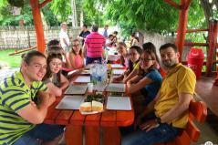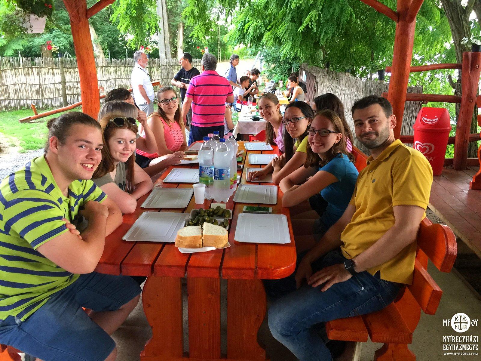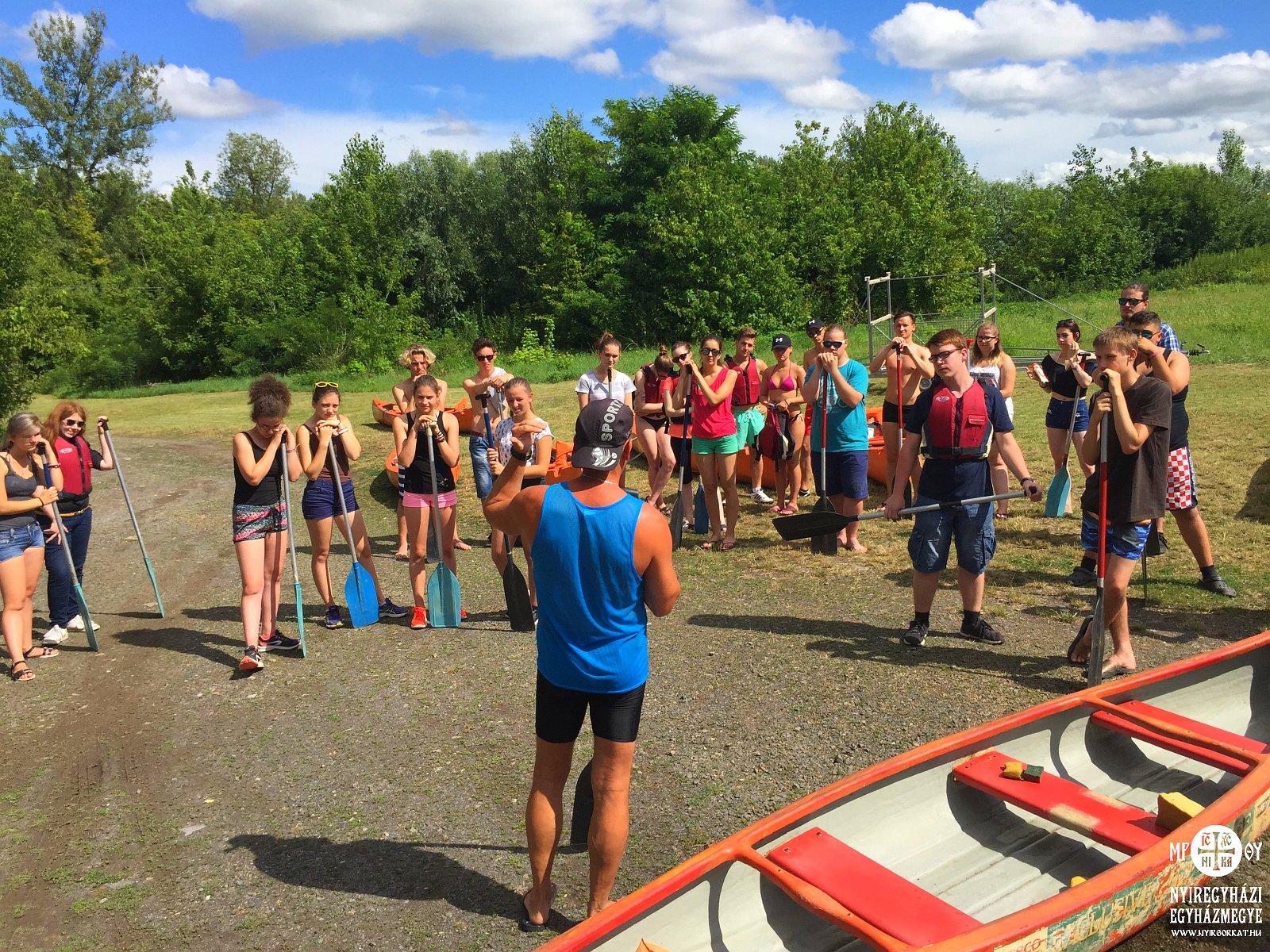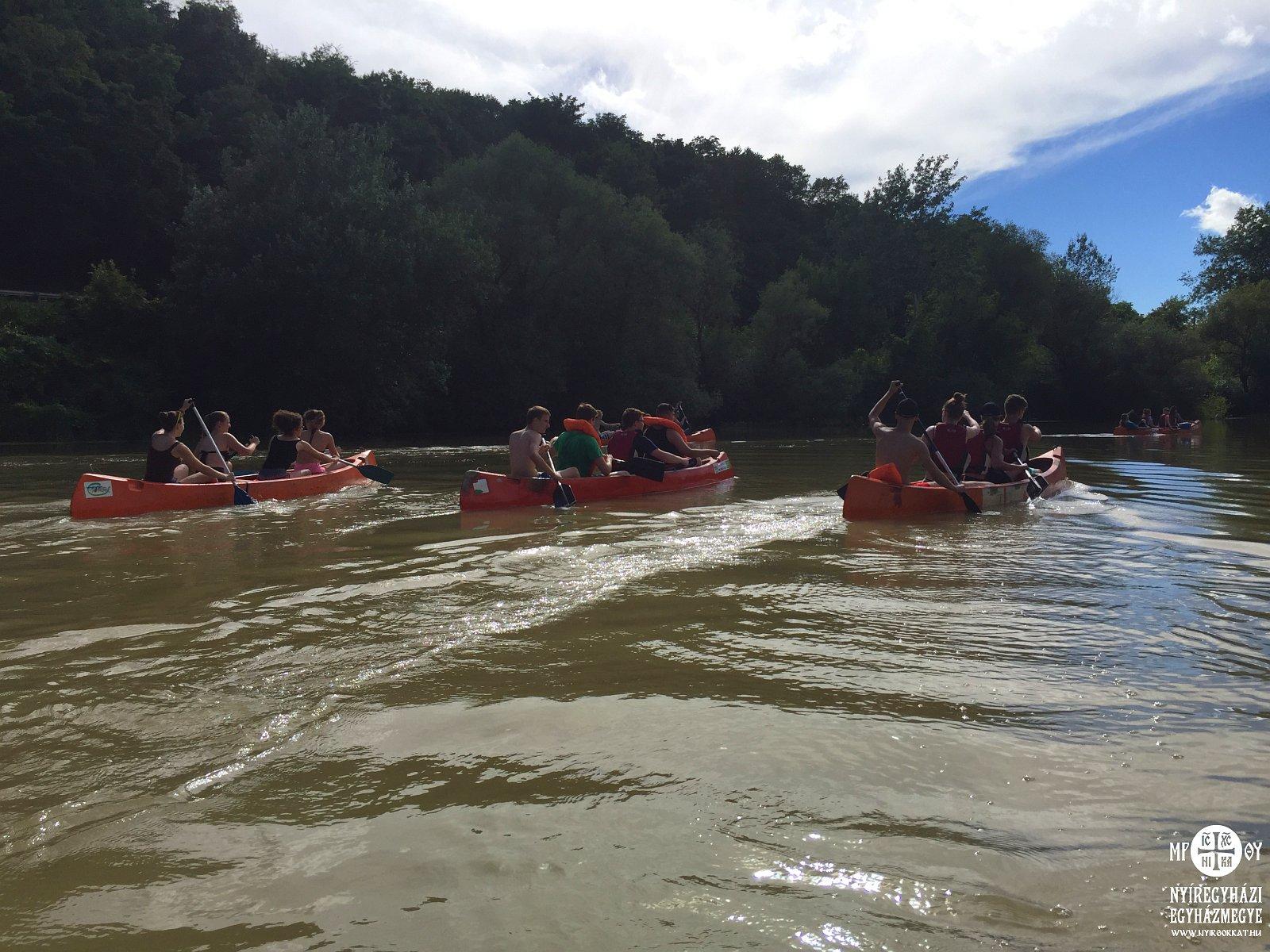 „Szombat délutánra kisütött a nap, így végre kenuzhattunk. Négy fős kenukban eveztünk, ami egyrészt nagyon élvezetes, másrészt nehéz is volt, hiszen a négy embernek egyszerre kellett mozognia, figyelnie a másikra, hogy ne boruljunk fel és haladjunk előre. Összesen 14 kilométert lehetett megtenni a folyón, […] majd vacsora után elmentünk Tarcalra és felgyalogoltunk a Krisztus-szoborhoz. Vasárnap délelőtt Timáron együtt imádkoztunk a Szent Liturgián a hívekkel, akik nagy szeretettel fogadtak és meg is vendégeltek minket. Délután pihentünk, de volt lehetőség lovagolni, íjászkodni, focizni és társasozni is. A fociba fiúk, lányok és papok egyaránt bekapcsolódtak, ez tette igazán élvezetessé a játékot. […] Ha jövőre is lesz ilyen tábor, biztosan ott leszek újra.” (Pristyák Eszter)