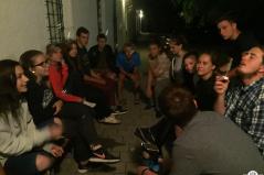 A gitár az egész tábor alatt szólt, elengedhetetlen tartozékunk volt. A szél pedig belekapaszkodott a hajunkba és a nevetésünkkel repítette. […] Este a vacsorát egy közeli fapados halsütödében költöttük el. A víz partján ücsörögve keszeget eszegetni megint csak kellemes melegséggel töltött el. […] Később a tűz körül ülve meséltünk Ábel atyának az élményeinkről, és mindenről, amit átéltünk és éreztünk. Volt, ami mindannyiunkban megfogalmazódott – lám különbözünk és mégis egyformák vagyunk. Abban mindenki egyetértett, hogy a kisebb baráti körök ellenére mi így, közösen, egy csapat vagyunk. És persze abban is, hogy hálásak lehetünk a Jóistennek mindenért. […] Másnap fél óra meredek hegymenet után, sok fiatal egy emberként hagyott volna fel a gyaloglással. Csabi atya buzdító szavai azonban nem hagyták, hogy visszaforduljunk, és ezt a döntést nem is bántuk meg. Egymást - és ezzel magunkat is- bíztatva felértünk a csúcsra. Büszkék voltunk, hogy megcsináltuk.” (Sarkadi Luca)