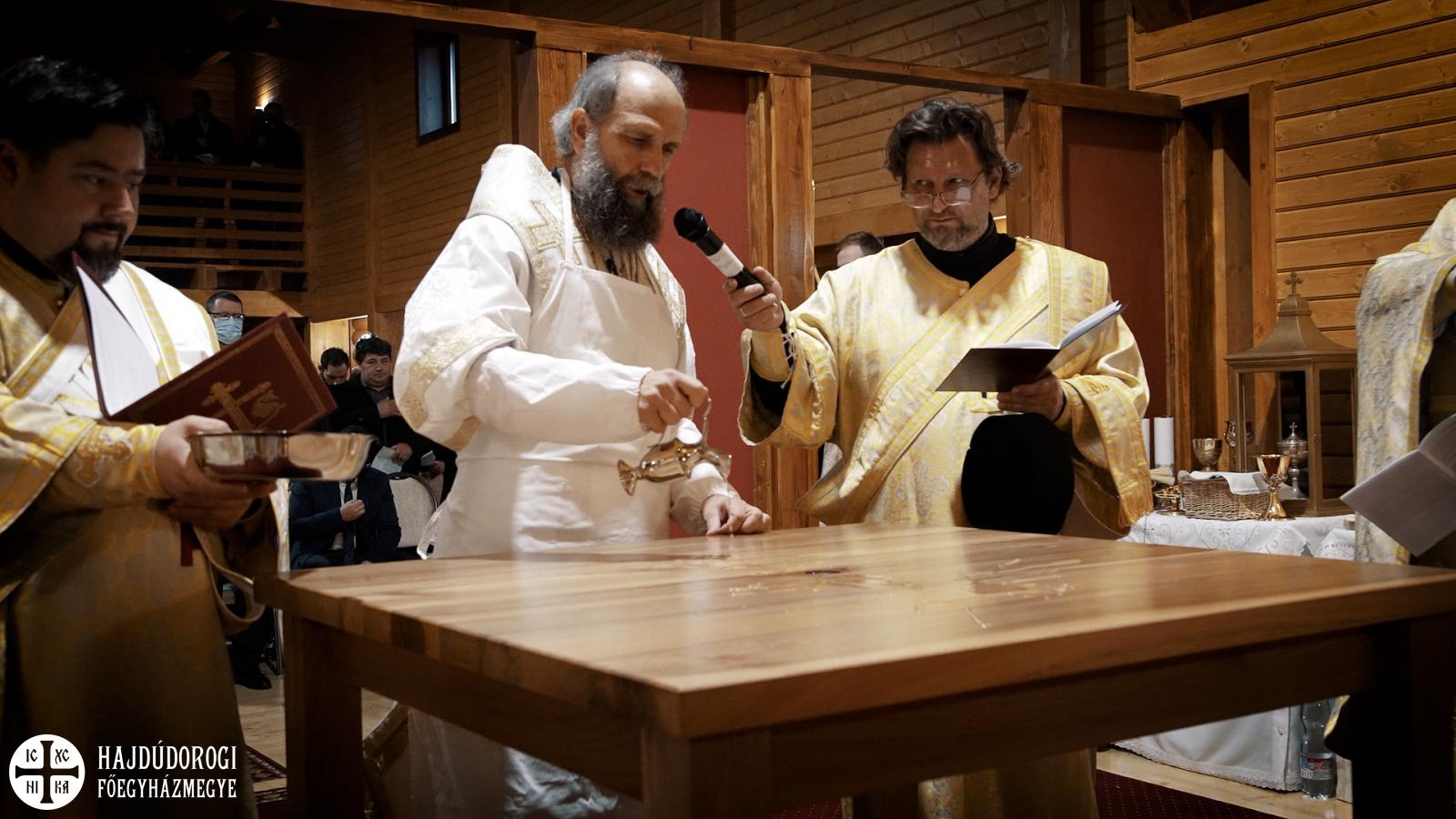 Az oltár fölkenésének és felöltöztetésének szertartásán Fülöp metropolita elsőként a vizet, illetve a bor és rózsavíz keverékét áldotta meg, végül megszentelt olajjal kente meg az oltárt. A szentelési ceremónia a templom falainak megáldásával ért véget.