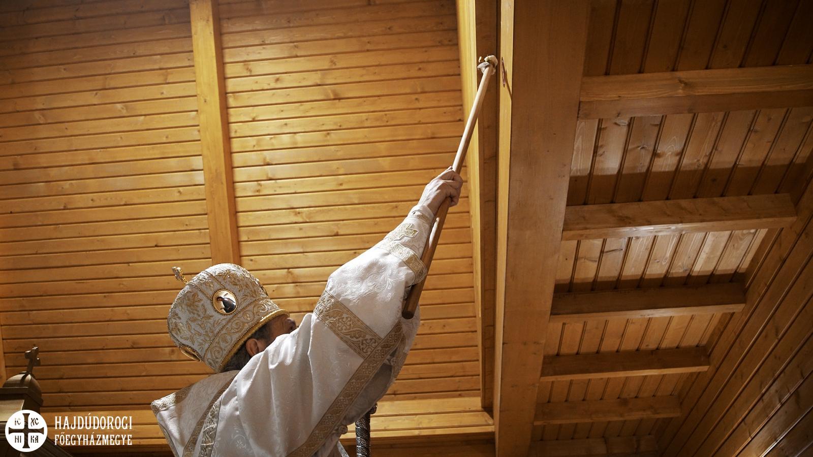 „Én úgy érzékelem ez a templom ilyen.” – mondta a főpásztor, majd kitért arra, hogy az építőanyag a Gyimesből származik, Gyimesfelsőlokról, ami egykor a Hajdúdorogi Egyházmegyéhez tartozott, mintegy külhelynöksége volt.