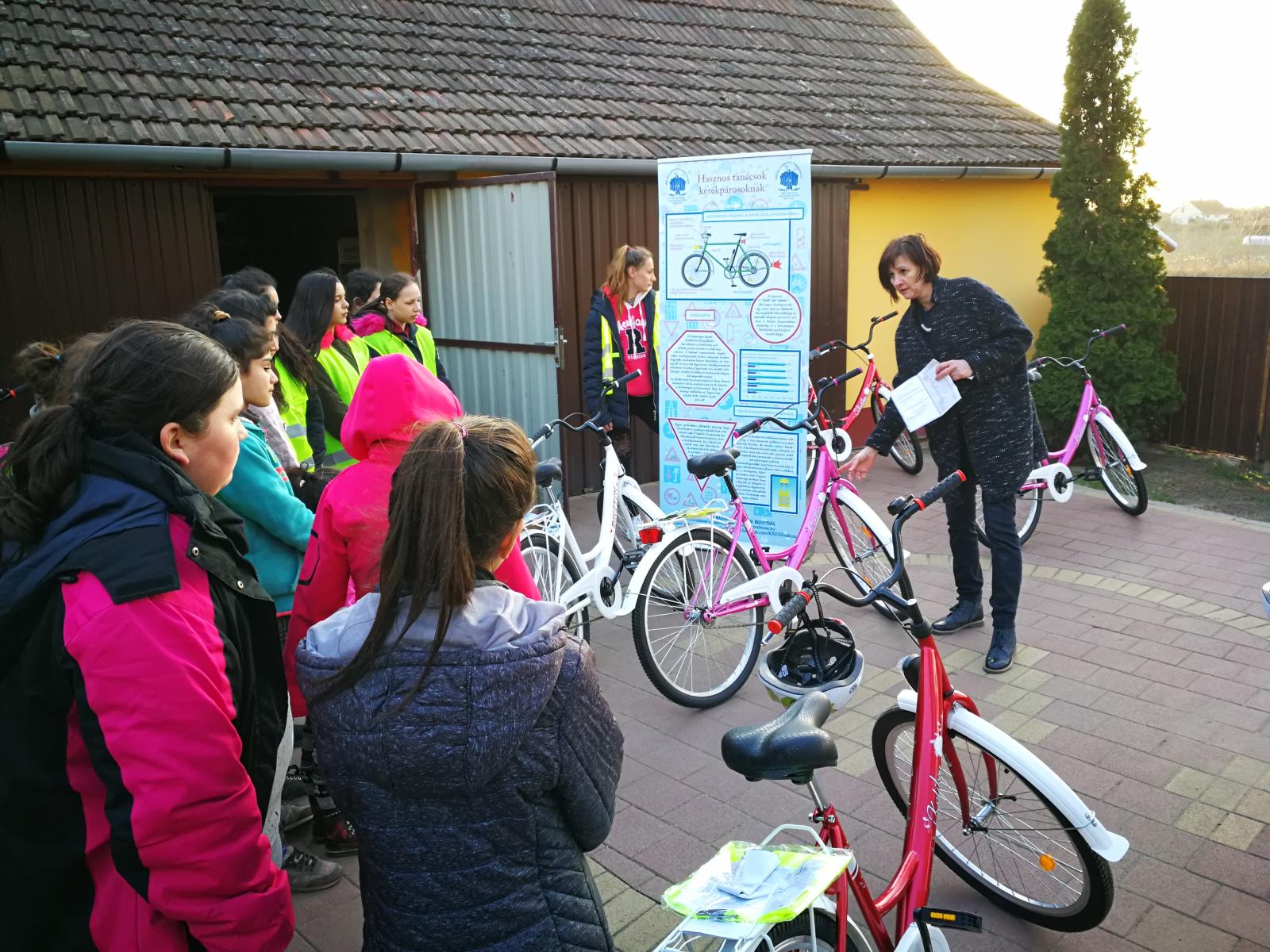 Ezúton is köszönjük szolgálatukat! Jelen volt egy kerékpárszerelő is, aki egyenként beállította és üzembe helyezte a kétkerekűeket. A kerékpárokhoz láthatósági mellény és fejvédő sisak is járt.