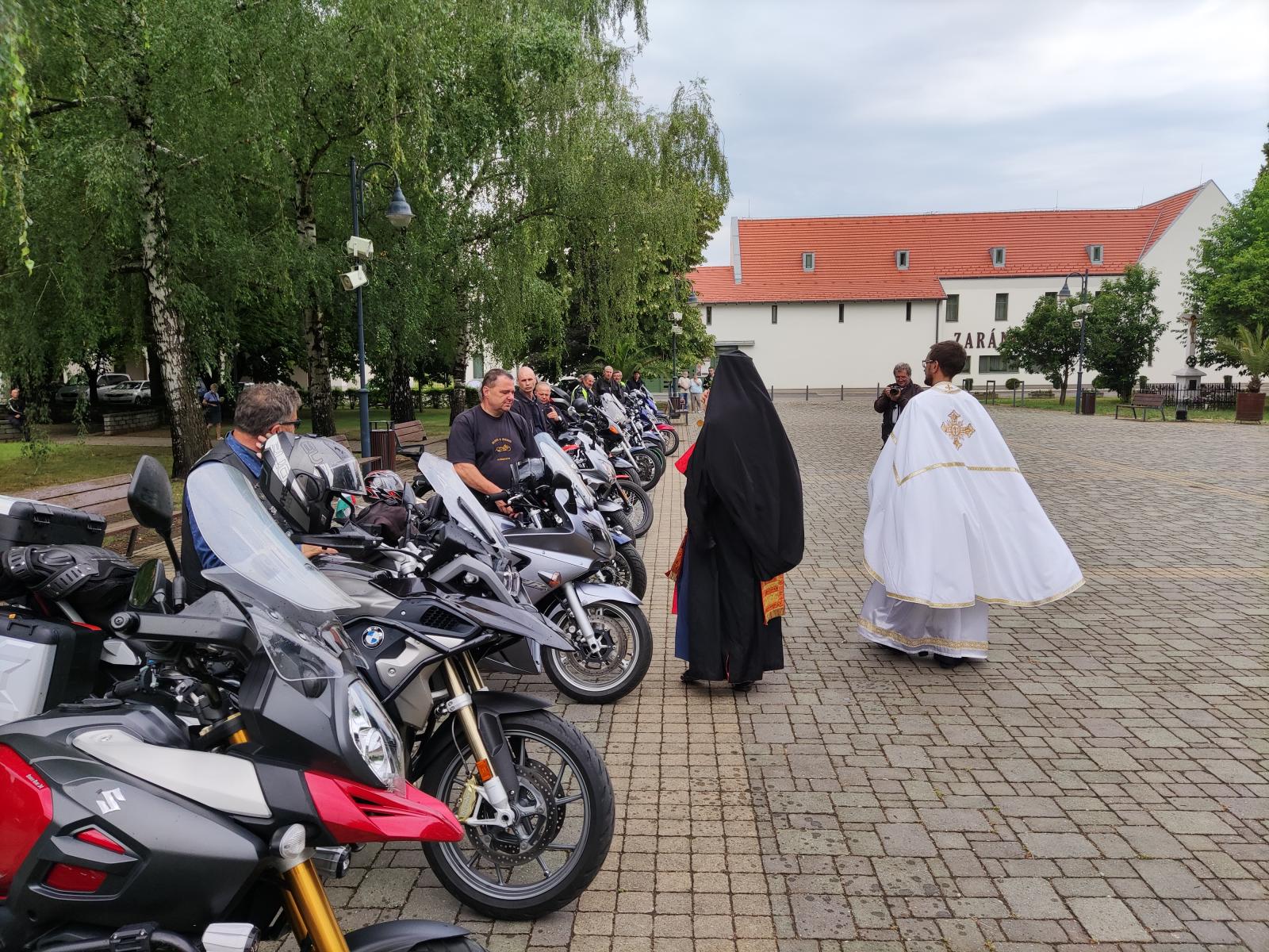 Szombat reggel csillagtúraszerűen érkeztek a motoros társak Máriapócsra, mintegy ötven motor érkezett hetven fővel, sőt még kerékpárosok is csatlakoztak hozzánk. Valamennyien részt vettünk a Szent Liturgián, melyet Kiss Zsolt atya és Karakó Roland atya celebrált, majd a végén Fülöp érsek-metropolita atya megáldotta járműveinket. Délben közösen elfogyasztottuk az ebédet, melyre meghívtunk minden résztvevőt. Ezt követően Túristvándiba gurultunk, ahol még a régi vízimalmot is működésbe hozták. Következő állomásunk Kölcse volt, ahol a programunk zárásaként megnéztük az emlékművet. Testileg és lelkileg egyaránt feltöltődve ért véget utunk, amiért hálásak vagyunk a Jóistennek.