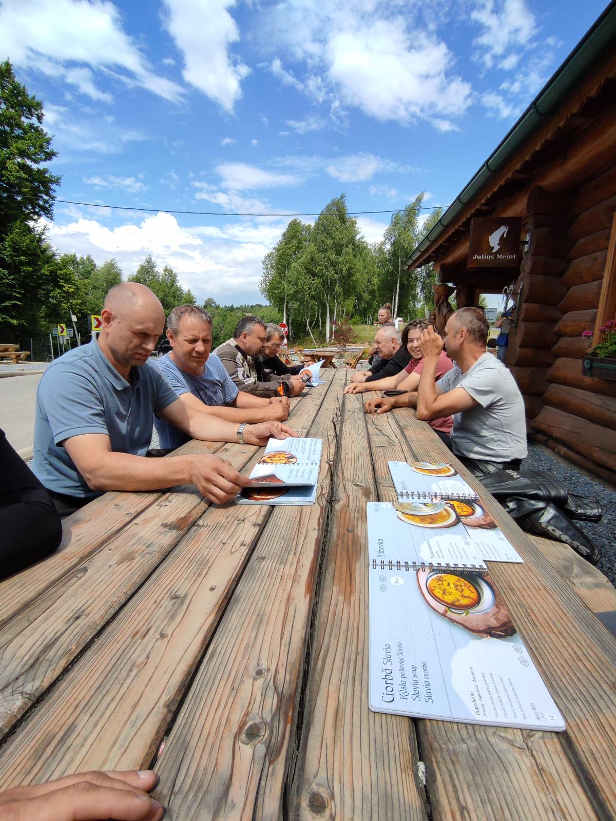 A lelki töltekezést követően indultunk el a létavértesi határátkelőhöz, ahonnan Nagyvárad felé vettük az irányt. Itt volt az első pihenőnk és tankolási lehetőség. Belényes felé haladtunk tovább, ahonnan az izgalmasabb hegyi utak felé fordultunk és meg sem álltunk a Huta Slavia nevezetű étteremig. Itt lehetőség nyílt egy kis sétára, beszélgetésre, és testi feltöltődésre.