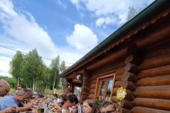 Az este folyamán kis csoportok alakultak ki, ahol a beszélgetések témája nagyon változatos volt, illetve előkerült az asztal alól még két citera is, így akinek énekelni volt kedve azt is megtehette. A jó hangulatú estét követően a tervezettnél kicsit később kezdődött a nap. Reggel Fülöp érsek-metropolita lepett meg bennünket, már korán ott várt ránk a reggeliző helyünkön. A reggelit követően a templomban elvégeztük a III. imaórát, majd a főpásztor gondolatait követően az utunk lelki vezetője Tatai Zoltán atya adott támpontokat a napra. Kiemelte, hogy a motorozás közben az útra való figyelem mellett van ideje a motorosnak gondolkodni, imádkozni, elcsodálkozni a táj szépségein és az egész teremtett világon.