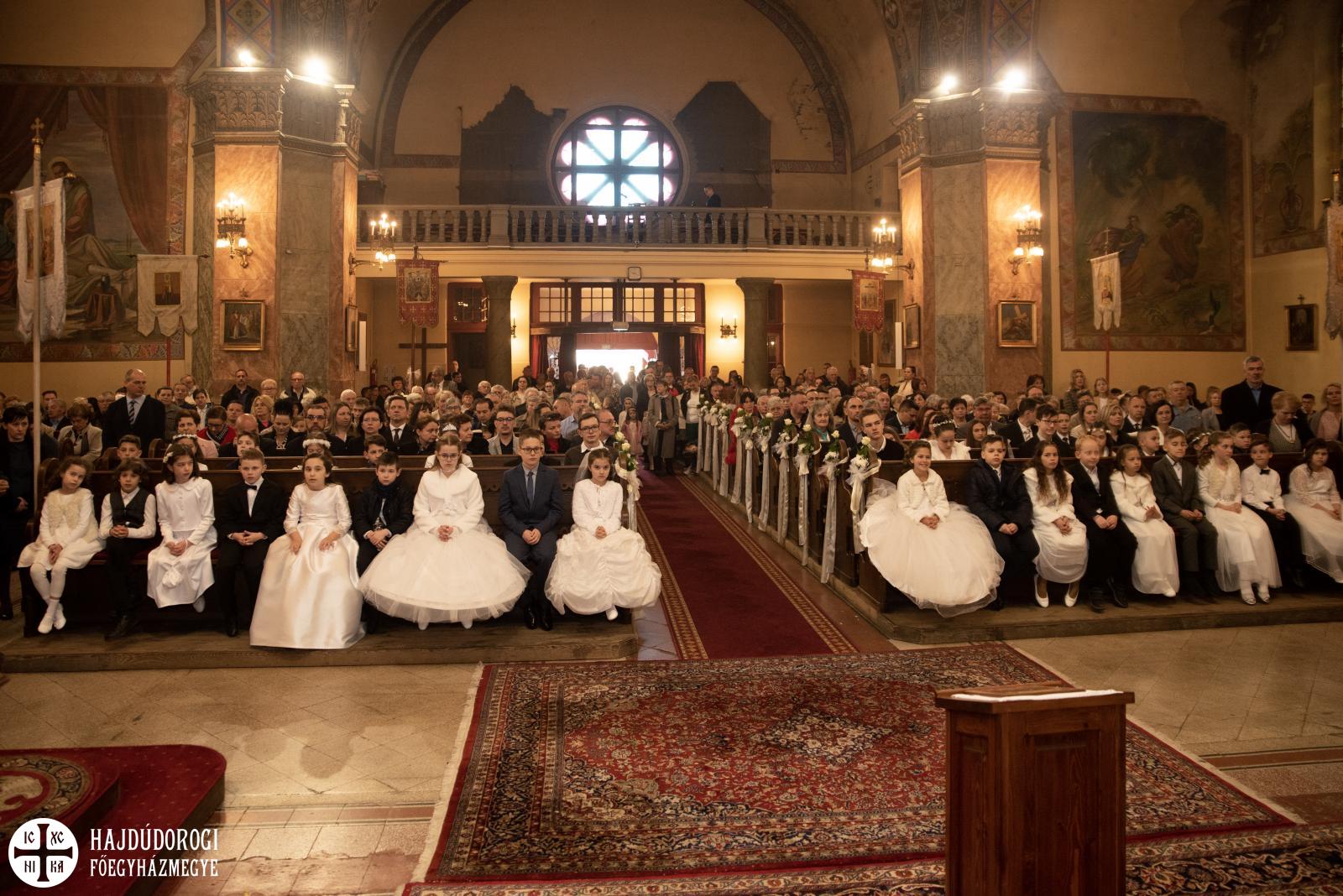 - A testét és vérét most is magunkhoz vehetjük, mert az az utolsó vacsora az az asztal, itt van velünk. Itt van a templomban, az oltáron, ami minden templomban egyfajta „terem”, „asztal”, ahol Jézus megterített az utolsó vacsorára. Az oltáron lévő kenyér és bor az Eucharisztia, Jézus teste és vére, ami bizonyítja, hogy bár a sír üres, de Jézus velünk van, a világ végezetéig – magyarázta az elsőáldozóknak a főpásztor.