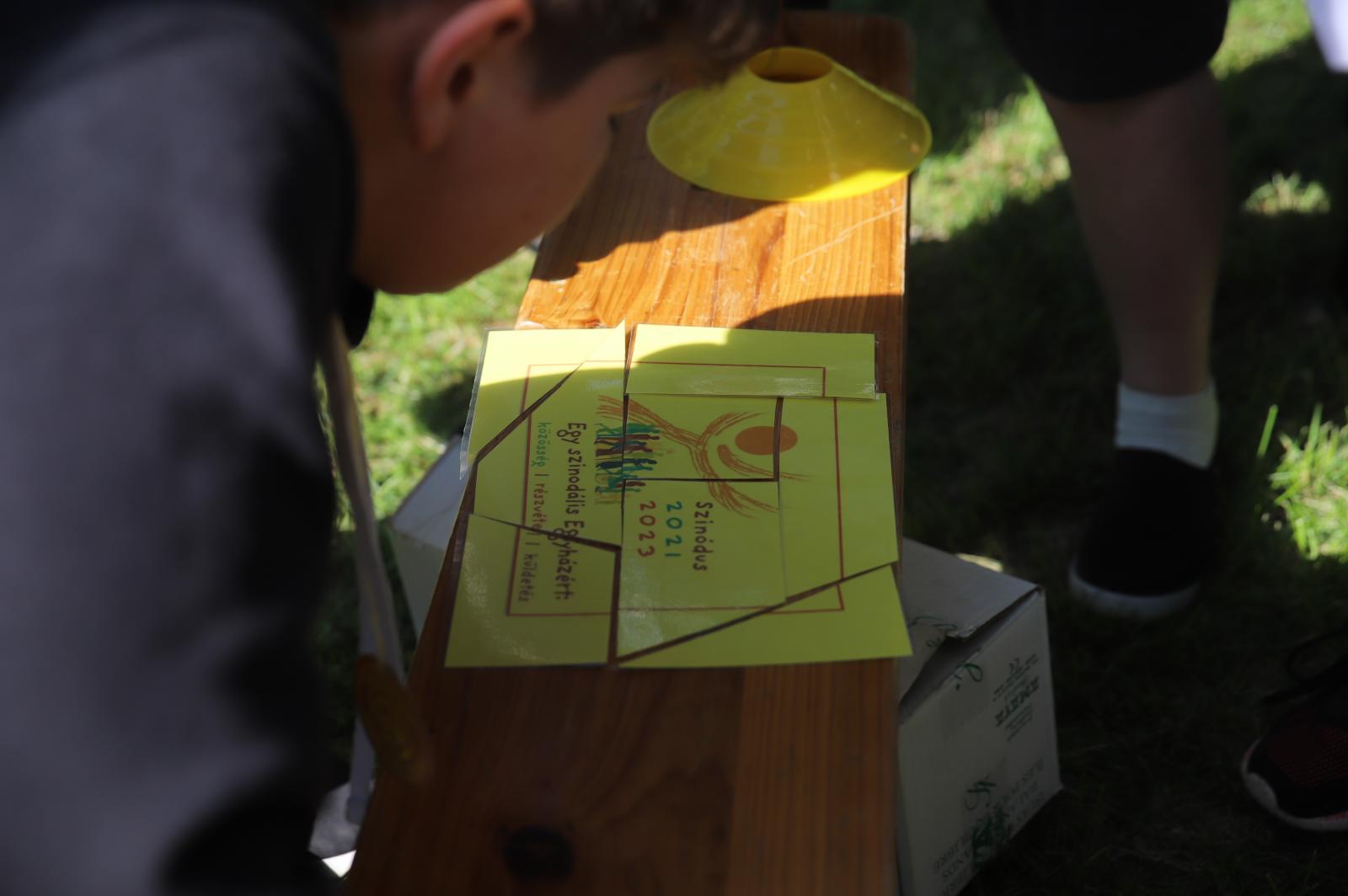 A megállóhelyeken érdekes feladatok megoldása után a résztvevők pecsétet kaptak menetlevelükbe. Volt „hittanautomata”, különböző ügyességi és sportos feladatok, bibliai kvíz, láthattunk bibliai jeleneteket, elrejtett kirakó-darabokat megtalálva és összeillesztve a szinódus szó jelentésével ismerkedhettek meg, ezzel is jelképezve az együttlét fontosságát. A lepecsételt menetlevelek bemutatásáért mindenki ajándékcsomagot kapott a beváltópontnál, amit nagy örömmel fogadtak és büszkén viseltek a gyerekek.