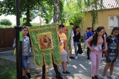 Délelőtt a színpadon a Szent Bazil Görögkatolikus Általános Iskola színjátszó csoportjának előadását láthattuk, akik a Habakuk című mesejátékot adták elő. Az előadás után minden zarándok a Kossuth térre gyűlt össze, kiürült az ugrálóvár és elcsendesedett a sokadalom, hogy együtt könyörögjenek az Istenszülő Szűz Máriához.
