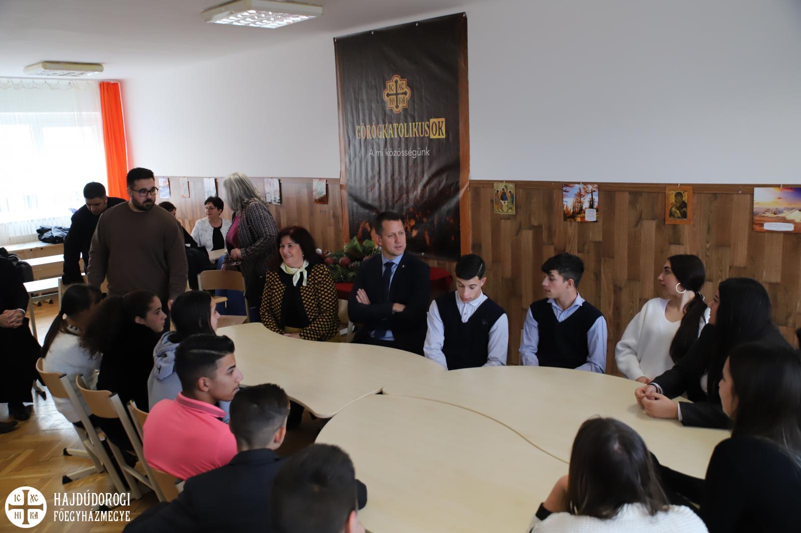 Két görögkatolikus intézményünk diákjai is abban a szerencsében részesültek, hogy megkaphatják ezt az ösztöndíjat. Ebben az örömünkben osztozott velünk Fülöp Attila, gondoskodáspolitikáért felelős államtitkár, aki ellátogatott Nyíregyházára, a Szent Bazil Görögkatolikus Szakképző Iskolánkba, hogy találkozzon a fiatalokkal. Elkísérte őt Radomszki Lászlóné, társadalmi felzárkózásért felelős helyettes államtitkár, aki egy kis karácsonyi meglepetést is hozott magával. Szintén személyesen gratulált a tanulóknak Szocska A. Ábel megyéspüspök is, aki további sok sikert kívánt a diákoknak.