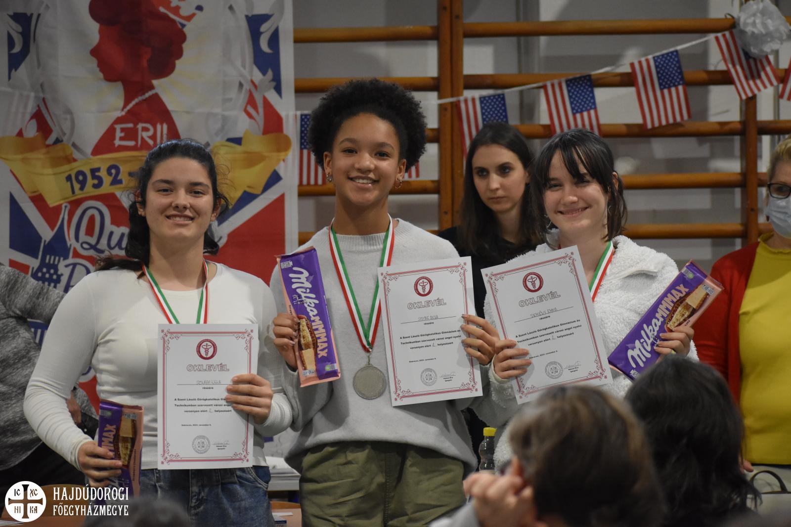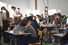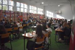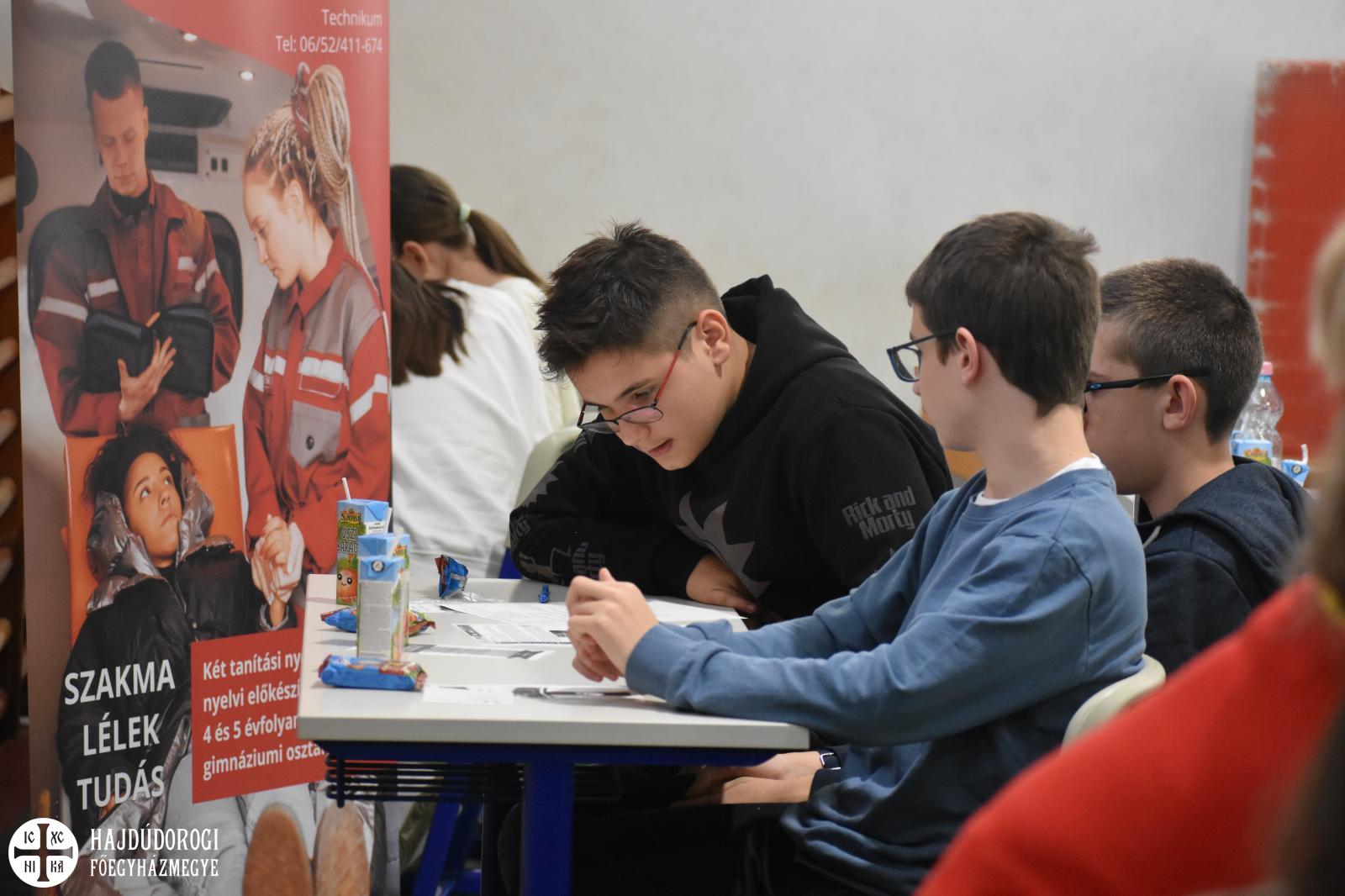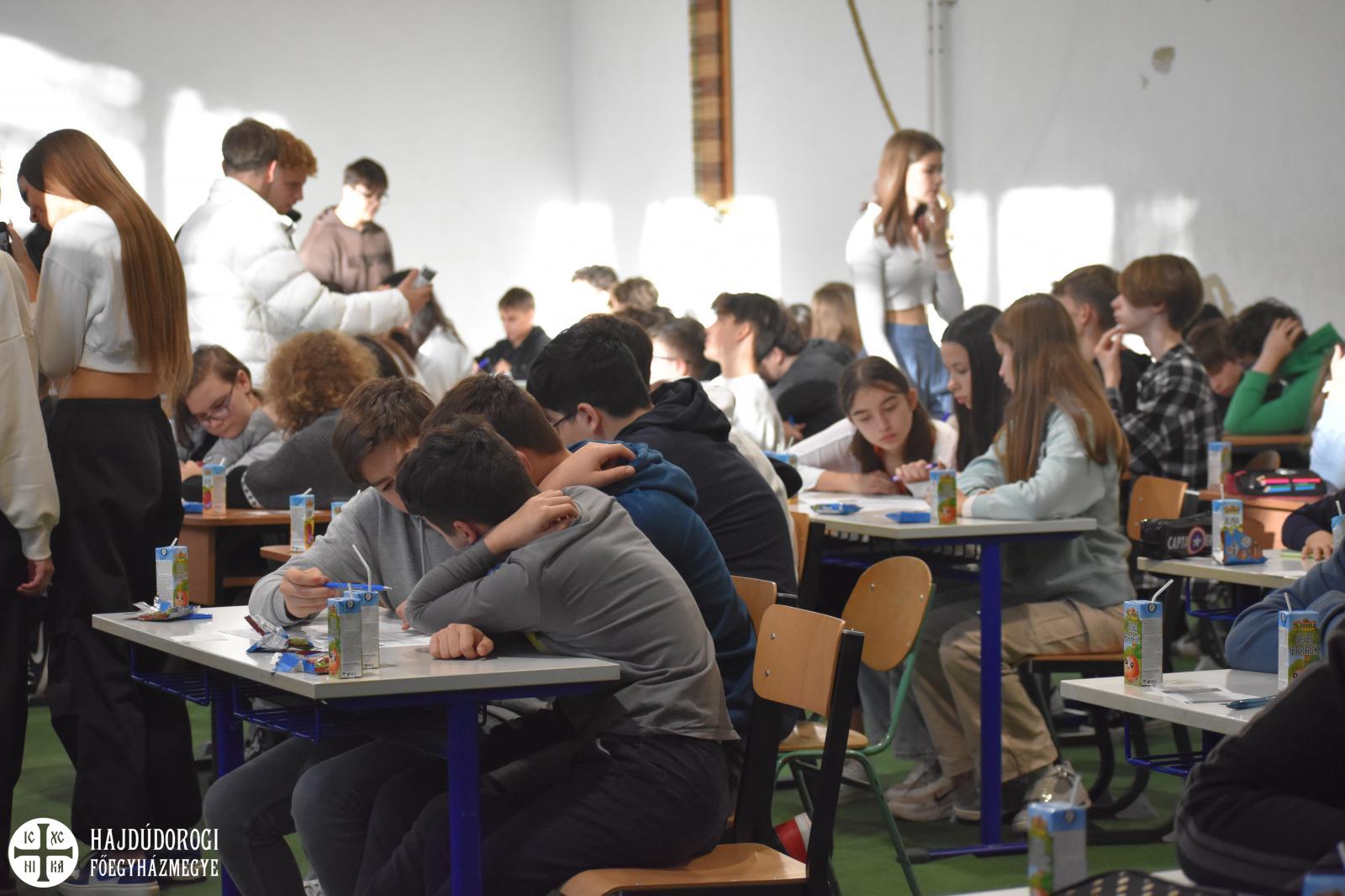 Jókedvű, lázasan dolgozó tanulók zsivajától volt hangos tornatermünk november elején, amikor a hagyományos városi angol és német nyelvi versenyünket rendeztük meg. Erre az általános iskolák hetedik és nyolcadik osztályos tanulóit várjuk 3 fős csapatokban. Angol nyelvből 11 iskola 38 csapatában 114 tanuló, német nyelvből 4 iskola 6 csapatában 18 tanuló indult a versenyen. Örömteli élmény volt mindannyiunk számára a sok kis versenyző diák izgalomtól kipirult, mosolygós arca és nevetése, mely azon a délutánon egész iskolánkat betöltötte. Az aranyérem mellett az első helyezett csapatok tanulóinak mentességet ajánlunk fel a szóbeli angol felvételi vizsga alól az angol-magyar két tanítási nyelvű és az angol nyelvi előkészítős osztályainkba.