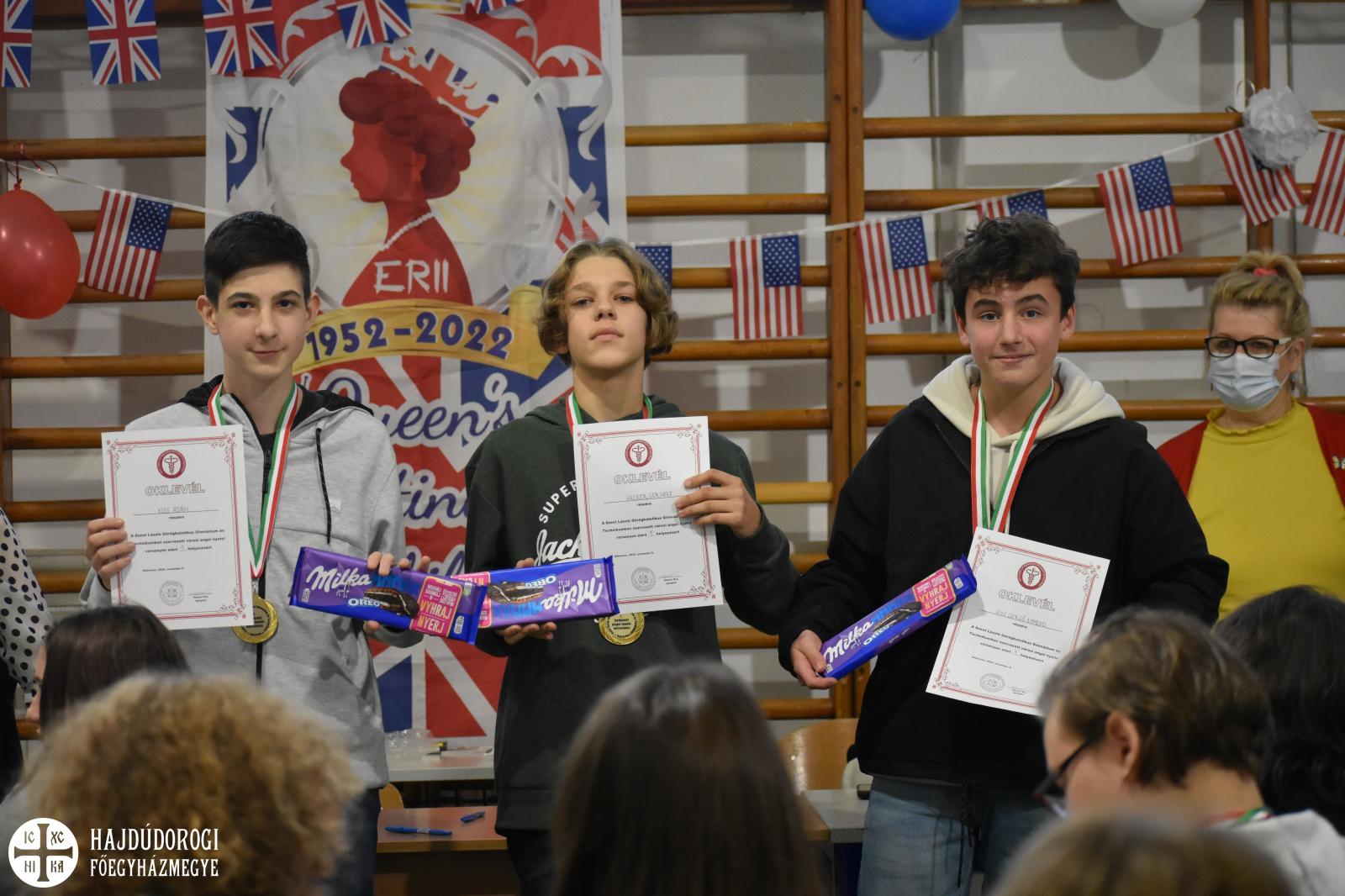 Az angol nyelvi versenyen első helyezettként aranyéremmel térhetett haza a Debreceni Református Kollégium Általános Iskolájának csapata, osztott második helyen végzett az Ebesi Arany János Magyar-angol Két Tanítási Nyelvű Általános Iskola és a debreceni Lilla téri Általános Iskola egy-egy csapata, a harmadik helyen pedig a Debreceni Bolyai János Általános Iskola és Alapfokú Művészeti Iskola és a Szoboszlói Úti Általános Iskola csapatai osztoztak. A német verseny aranyérmese a Debreceni Vörösmarty Mihály Általános iskola lett, még az ezüst- és bronzérem mindegyikét a Debreceni Petőfi Sándor Általános Iskola csapatai szerezték meg.