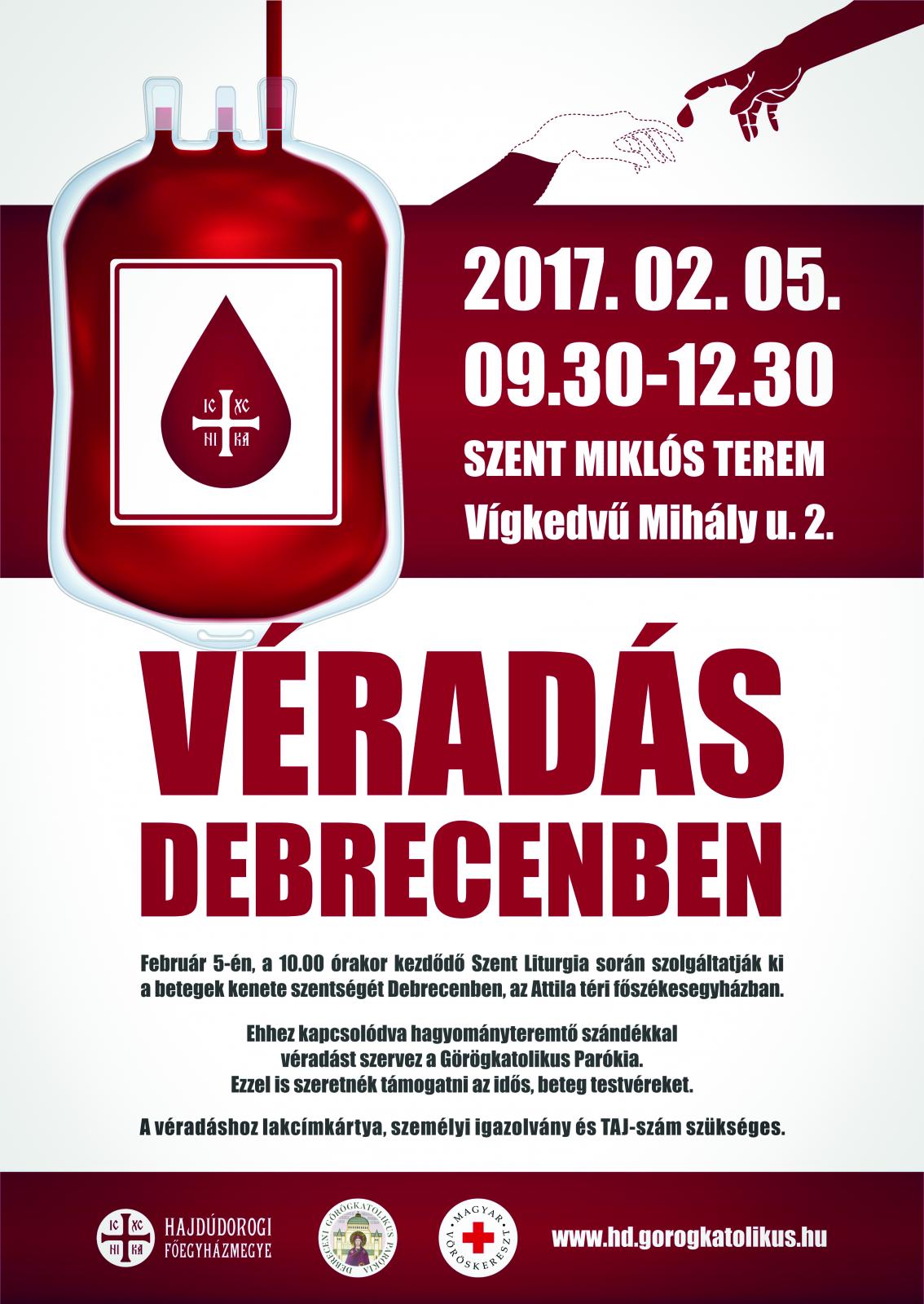 2017. február 5-én, a 10:00 órakor kezdődő Szent Liturgia során szolgáltatják ki a betegek kenete szentségét Debrecenben, az Attila téri főszékesegyházban. Ehhez kapcsolódva, hagyományteremtő szándékkal, véradást szervez a Görögkatolikus Parókia. Ezzel is szeretnék támogatni az idős, beteg testvéreket.