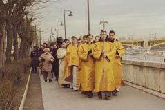 Krisztusban szeretett testvéreim! Ezek nem lényegtelen kérdések! Ezek az életünk kérdései, amelyek nem maradhatnak felelet nélkül. Hogy mi történik vízkeresztkor a folyó vizével, az nem pusztán száraz teológiai kérdés. Ez az életünket érinti. Amennyiben megérint minket a megszentelt víz, annyiban érint minket az Isten áldó keze. Márpedig egyáltalán nem mindegy, hogy megáld-e ez a kéz vagy sem. Nem mindegy, hogy részesülök-e ebben az áldásban vagy sem. Hogy odahajtom-e a fejemet Isten áldó keze alá, vagy nevetve elfutok előle. Testvéreim, ez az életünk lényegét érintő kérdés, hogy hogyan közeledem Isten áldó keze felé.