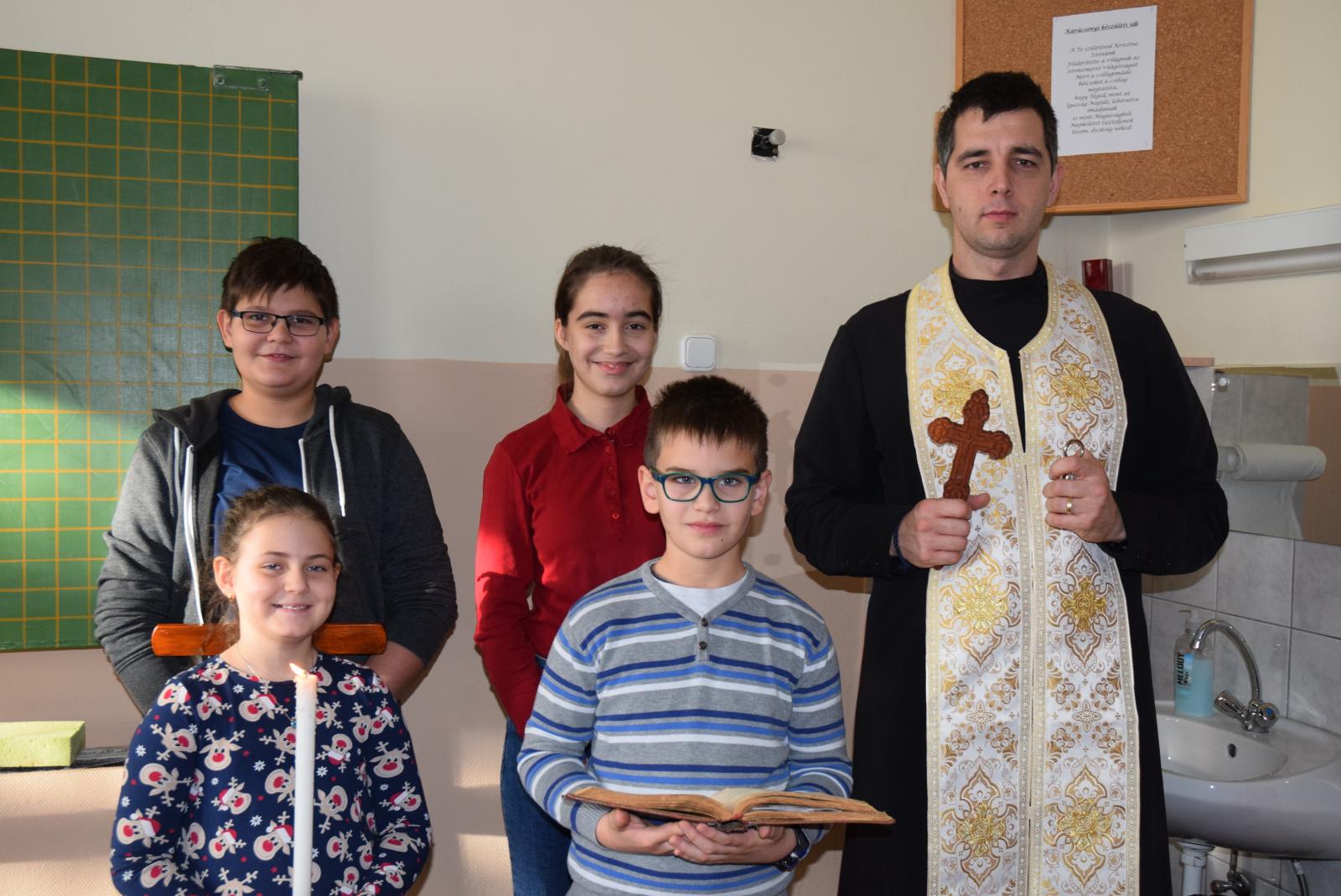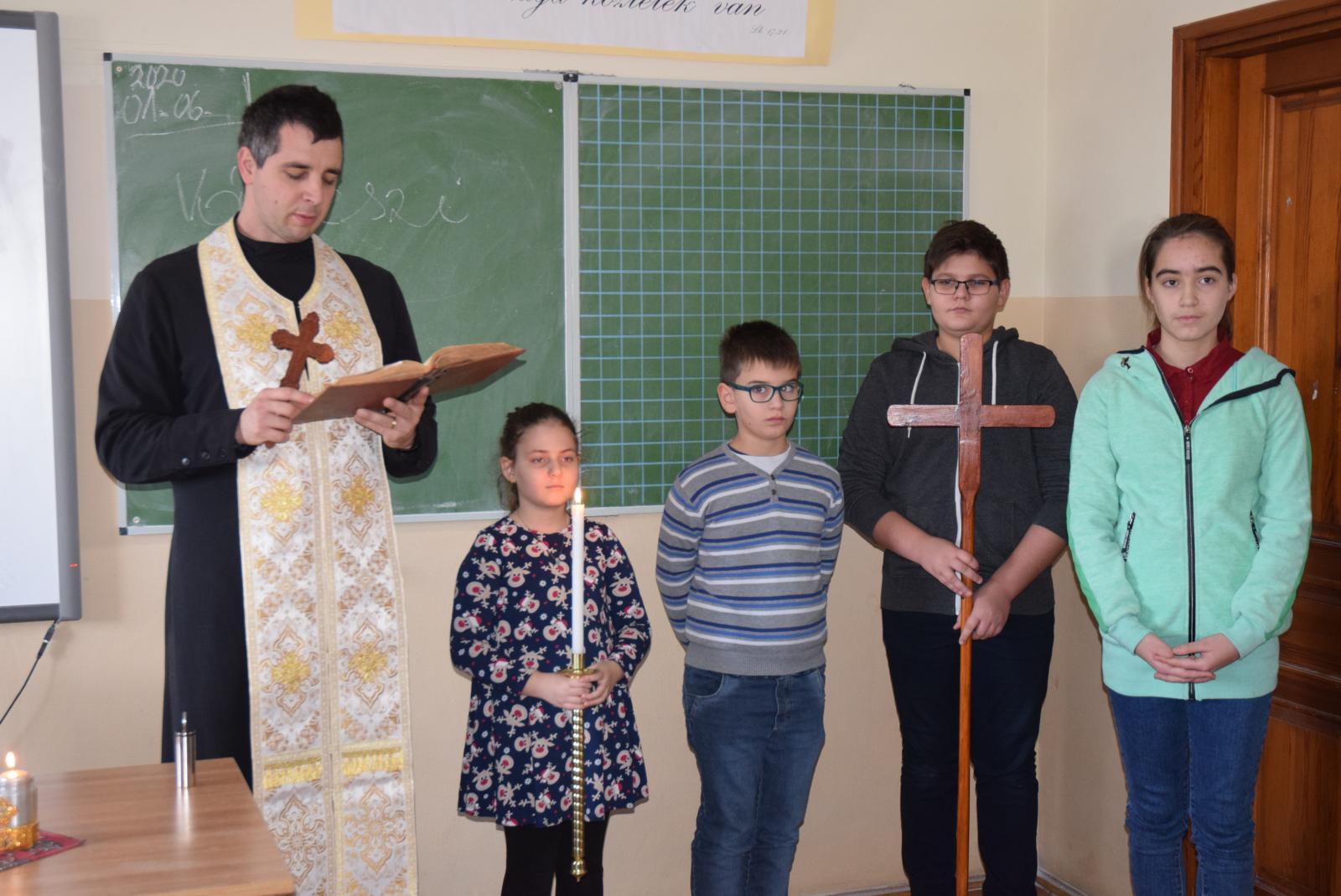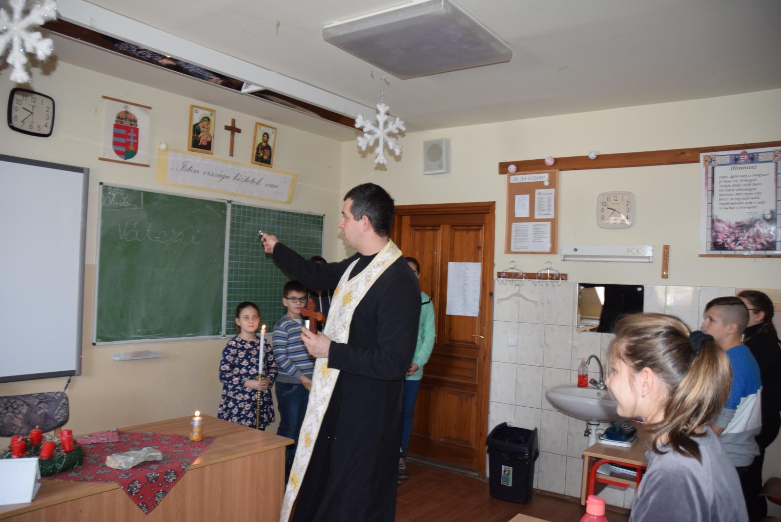 A segédlelkész azt is elmondta a gyermekeknek, hogy a szentelés nem más, minthogy vendégül látjuk az Istent, és kérjük, hogy egész évben legyen jelen a diákok, a pedagógusok, az iskola valamennyi dolgozója életében, és segítse az intézmény munkáját a tanév folyamán. Az iskola megszentelése azért fontos, mert nemcsak az otthonokban, de az iskolában is szükség van az isteni áldásra.