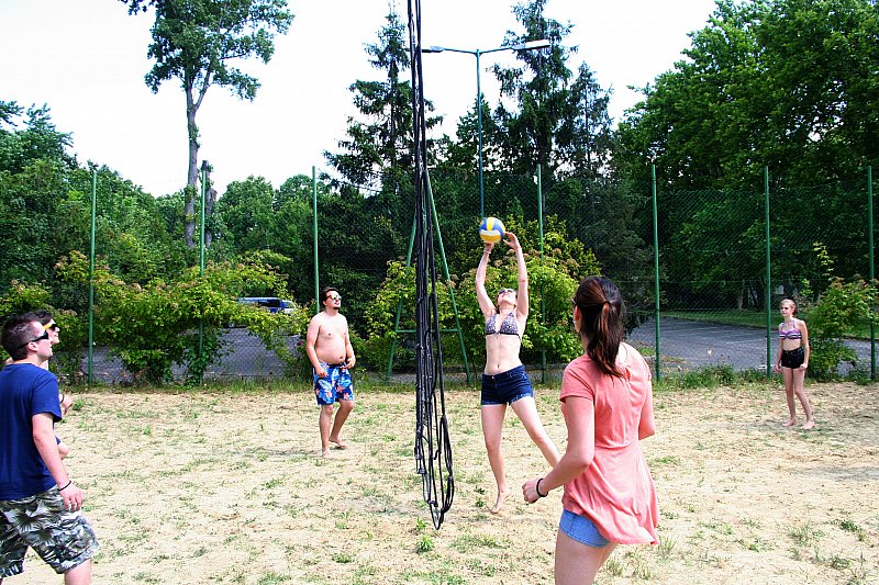 A délután folyamán a balatoni fürdőzés mellett focimeccsen szurkolhattunk, a fiatalok röplabdajátékát csodálhattuk meg, nézhettük a trambulinon ugráló kicsiket és élvezhettük a nap megnövekedő erejét. Késő délután közösen tornázhattunk a parton.