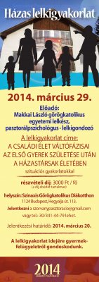 Idén tavasszal ismét Görögkatolikus Házas Lelkigyakorlatot szervezünk Budapesten, a Szinaxis Görögkatolikus Diákotthonban. Március 29-én, szombaton 9.00 órától várunk benneteket!